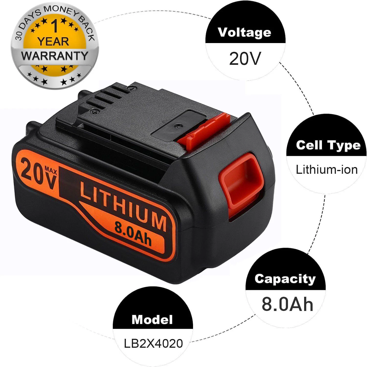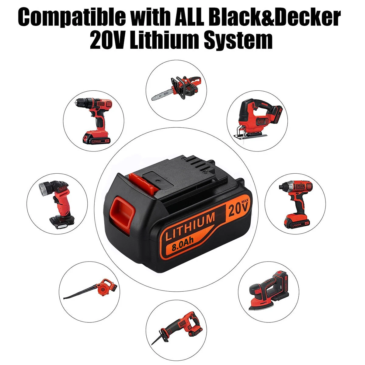 leaderwolf06 leaderwolf06 Product Description: About US: We focus on designing and manufacturing varieties of Power Tool batteries with high quality and competitive price.We will do our best to serve you! Item Specifications: 1.100% new and high quality cells 2.Battery Voltage : 20V 3.Capacity : 8.0Ah 4.Battery Composition:Lithium-ion (Li-Ion) 5.Compatible Band: Fit For BLACK+DECKER 6.Warranty : 10 Year Warranty + 90 Days Money back Compatible PN: For BLACK+DECKER LB20, LBX20, LBXR20, LB2X4020,LBXR4020, LB2X4020-OPE Compatible Models: FOR Black & Decker BDCDMT120 FOR Black & Decker CHH2220 FOR Black & Decker LDX120C FOR Black & Decker LDX120SB FOR Black & Decker LGC120 FOR Black & Decker LHT2220 FOR Black & Decker LST120 FOR Black & Decker LST220 FOR Black & Decker LST300 FOR Black & Decker LSW20 FOR Black & Decker SSL20SB FOR Black & Decker SSL20SB-2 LHT120, LPHT120, LSW120, LPP120, LCS120, LLP120, LGC120, SSL20SB-2 ASL186K, ASL188K, BDCDMT120, CHH2220, EPL188KB Package included: 2X 8.0Ah For BLACK+DECKER 20V 20 Volt Lithium Battery 1X User Manual NOTE: 1. The battery must be FULLY charged before first use. 2. The battery is stored in a cool and dry place. 3. Do not Separation, extrusion, and impact. 4. Do not put battery into water and fire. 5. Keep away from children. Payment: 1. We accept Paypal ONLY. It's a safer, faster and free way to pay! 2. Please pay the money within 7 days after the auction ended. 3. Non-Paying Bidders: Serious Buyer Only! Please place bid or "Buy it now" only if you agree the price and terms of the product and no argument after the auction end. And payment must be received within 7 business days of the auction close. We will report Non-paying buyer to eBay. Terms of sales: 1. It is our goal to provide our customer 100% satisfaction. 2. 60 Days Money Back Guarantee and Full 10 Year Limited Warranty from the date of original purchase. 3. Product should be returned with original packages and must be returned in like-new condition with all accessories and packaging. 4. In all cases, buyers pay shipping fees at their own cost to return products for exchange or refund. We will be responsible for the postage of replacements. Refund will be made upon receipt of the returned item. 5. If the return is due to the mistakes of buyers, for example, wrong purchase, no need of the batteries after transaction, or other artificial damages, P&P would be deducted while refunding. 6. Refund will be made upon receipt of the returned item. Delivery detalis: 1.Our shipping rates include the cost of shipping, handling, packaging and related manpower costs. 2.All items will be shipped to buy's PayPal address. Please check your PayPal address is right. 3.We are not responsible for wrong or undeliverable address. We reserve the right to charge the shipping fee again for returned items due to wrong address. Contact us: We have always been trying our best to provide the best service and reliable products for every customer. Please contact us via eBay message or email to resolve the issue before leaving negative feedback. * Any problems pls contact us at any time before leaving a negative/neutral feedback. Many thanks to you. On Jul 19, 2023 at 04:04:43 PDT, seller added the following information: On Jan 11, 2026 at 18:22:22 PST, seller added the following information: