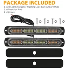 Product Feature Upgrade : Diecast Aluminum Housing & Ultra-thin design. 24 LED as light source, offers a super bright light output, can be seen on a bright clear day. High Performance : Integrated heatsink, and anti-condensation drain port, Waterproof and dust-proof , and corrosion-resistant . 18 Strobe Patterns : Built-in flasher, 18 select-able flashing patterns; Last pattern recall/memory function . Universal 12V-24V : Fits for any public utility vehicles, construction vehicles, tow trucks, snowplows, ambulances, oversize load vehicles, slow vehicles Easy to Install : 3 wires connection: Yellow for Flash Pattern Switch (Touch positive wire to pattern switch) , Red for Positive , Black for Negative ; Free Screws & Protection Pad to Attach to The Grille or Bumper. Product Specification Type Strobe Flashing Light Bars Material Diecast Aluminum Housing + PC Lens Number of Bulbs 2 Light Color Amber/White Strobe Patterns 18 Different Flashing Patterns Voltage 12-24V Power 72W (3W/LED) LED Type 3030 LED Quantity 24 LEDs/per light Waterproof Rate IPX-4 Lifespan 50,000 hours Size L 7.48" (190mm) W 1.1" (27mm) H 0.4"(11mm) Weight 152g Placement on Vehicle Front, Rear, Left, Right Application for Signal light, Daytime running light, Fog light, etc. Application-2 for Construction, Towing, Slow-moving Truck Application-3 for Vehicle, Auto Car, Pickup, Truck, SUV, ATV, UTV, Trailer Fitment Type Direct Replacement Package Included ✅ 2 x 24LED Flashing Strobe Light Bars Amber White ✅ 2 x Protection Pad ✅ 4 x Screws