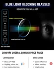 Oversize Big Square Blue Light Blocker Glasses Anti-Eye Strain Computer Eyewear Frame for Women and Men MATERIAL: Frame: TR90 Lenses: Anti-blue ray lens FEATURES: What a blue light blocking glasses can do: 1.Anti eye fatigue: Reduce eye strain and sensitivity to light when facing digital screens. Great for office workers or anyone who has to look at screen all day. 2.Minimize headache: Blue light blocking glasses will supercharge your health by blocking detrimental blue light while letting in all other beneficial light. 13.Sleep better: Exposure to high rate blue light will impact our sense of circadian rhythms cause insomnia. Wearing blue light filter glasses will improve your sleep, help you sleep better and have good night. TIPS FOR CLEANING: Use a gentle lens solution. To avoid scratches. Never wipe the lens when they're dry (there may be dust or particles). Use Soft materials such as cleaning cloths, Don't use paper towels or other rough materials. 【TR90 MATERIAL FRAME】:The frame of these blue light glasses are made from TR90 material. TR material makes these computer glasses only half weight of plastic glasses, and two times durable. And these blue light blocking glasses are also constructed with reinforced metal hinges to ensure durability and avoid breaking. No fade. 【BLUE LIGHT COMPUTER GLASSES】:Unlike other blue blockers on the market with heavily tinted lenses. Our low color distortion lens is optimized to provide the perfect balance blue light protection and vision quality.Blue Light Filtering,Reduced Glare,UV Light Blocking,Anti-Screen Flicker,Electromagnetic Ray Blocking lens. 【OVERSIZED SQUARE DESIGN】:Stylish oversized frame design, ideal for almost every kind of face, comfortable daily wear and popular among men and women. The frames fits any look whether casual, high-fashion or classically elegant 【GREAT FOR COMPUTER WORK】:Anyone who works hours a day at digital screens like computer, phones and is struggling to fall asleep at night, then you need a blue light filter glasses 【OUR SERVICE】:We stick to pay attention to product quality, if there's any quality problems please feel free to contact us.