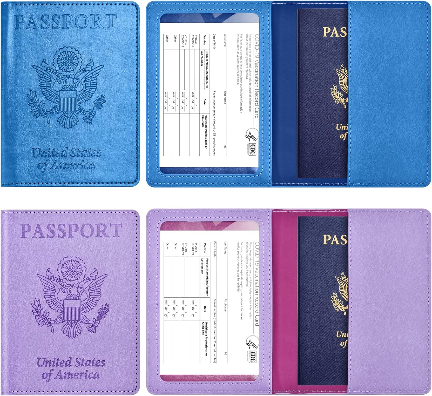 Store New Arrivals Add to Favorite View Feedback Contact 2Pack Passport Holder Wallet Cover Case, Travel Essentials for Women and Men Description Style Minimalist Color C-Sky Blue+Purple Pattern Solid Product Dimensions 5.6 x 4 x 0.2 inches Material Faux Leather Country of Origin China Item Weight 0.08 Kilograms Department Unisex Adult Multipurpose: There are 2 pockets in the passport Holder case; the clear pocket is for your vaccination card and the other one is for your passport Size: 5.6”x 4”(L x W) Lightweight and compact design; Our passport vaccine card holder will not add unnecessary bulk or weight; you can also put it into your bags or large pockets on your coat; ideal for traveling or business trips Easy to Show: Our passport holder and vaccine card holder has been custom-made to perfectly fit both your passport and vaccine card; Keep all your essential travel documents clean, organized; and safe in one place; Allows you to quickly access your travel paperwork and display CDC vaccination card when needed Material: Our passport and vaccine card holder combo is made from PU leather; soft comfortable in hand; waterproof; and easy to clean Practical Organizer Case: The perfect combination of passport and vaccine card; powerful storage can easily help you store passport; vaccine card; air ticket and other personal belongings Product Description Passport And Vaccine Card Holder Combo, Passport Holder With Vaccine Card Slot,Vaccine Card Wallet,Vacinatation Card Holder,Passport Case Our passport holder and vaccine card holder has been custom-made to perfectly fit both your passport and vaccine card. Keep all your essential travel documents clean, organized, and safe in one place. Allows you to quickly access your travel paperwork and display CDC vaccination card when needed. 5.6”x 4”(L x W) Lightweight and compact design, Our passport vaccine card holder will not add unnecessary bulk or weight, you can also put it into your bags or large pockets on your coat, ideal for traveling or business trips There are 2 pockets in the passport case: the clear pocket is for your vaccination card and the other one is for your passport. This passport and vaccine card holder combo is made from PU leather, soft, comfortable in hand, waterproof, and easy to clean. The perfect combination of passport and vaccine card, powerful storage can easily help you store passport, vaccine card, air ticket and other personal belongings. ABOUT US We offer the best prices around on high quality products. Our E-store includes media such as books, movies, music and games while offering electronics, toys, sporting apparel, clothing, tools, general home, garden items and more. SHIPPING We are always working hard to ensure your package arrives as soon as possible. Please understand that some factors like weather, high postal traffic, and the performance of shipping companies are outside of our control. We offer free shipping to the lower 48 states and ship within 2 business days of payment, usually sooner. We do not accept P.O. Boxes. Please provide a physical address. RETURNS We offer a 30-Day Return Policy on items which you are not completely satisfied with. You have the option for a full-refund or an exchange of the item. No returns are available on items shipped outside of the USA. PAYMENT We accept PayPal. CONTACT US This page content is yet to come Please ad us to your favorite seller and visit again later Thank You CUSTOMER SATISFACTION We try our very best to make sure every customer is completely satisfied. If there's a problem, message us! We're happy to help.
