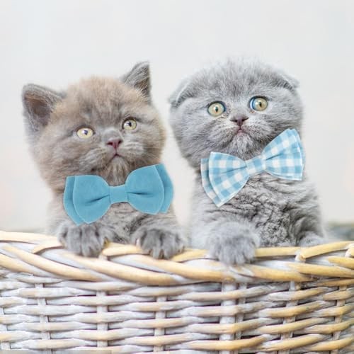 2pcs Adjustable Cat Collar with Bell and Bow Tie for Kittens Puppies