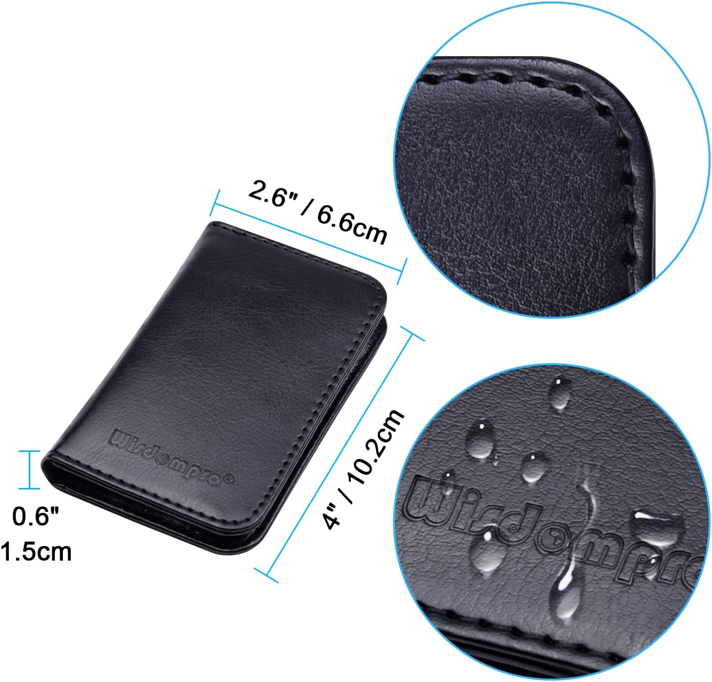 Business Card Holder 2-Sided PU Leather Folio Name Card Holder Wallet Case with 2-sided business card holder, fits maximum card size: 3.6"x2" (91x53mm). Approximately Holds up to 20 business cards Holder is made of premium and durable PU leather Two pocket and magnetic shut holder design, ensure the cards stay within the case will be completely protective Unique and novelty looking, small and thin, also can be used as a credit card holder, ID card holder, bus card holders, etc. 1pc high quality PU leather business name card holder Product Description Premium PU Leather Business Card Holder Wallet Case High Quality & Stylish Business Card Holder - Professional Choice for Your Cards Specially doubled sided wallet designed for multiple cards, like business cards, ID cards, credit cards, name cards and etc. It's portable, ultra light, slim, unique, novelty , perfect for businessmen, sales men, sales women, promoters, daily and office or travel use . Compact Size - Portable Business Card Case for Daily Use 2-sided PU leather folio wallet business name card holder / cover case, easy to put your cards in and out Unique and novelty looking Lightweight , Small and thin fit for your pocket and bag Magnetic shut holder design, ensure the cards stay within and the case will be completely protective Holder Dimension about: 2.6"x 4" x 0.6" (66 x 102 x 15mm) Fits maximum card size : 3.6" x 2" (91 x 53mm) Top-notch Material - Professional and Hand Made Holder is made of premium and durable PU leather Exquisite Workmanship - Make Sure it will be Strong and Long-lasting Material: PU Leather PVC PU Leather PVC PU Leather PU Leather Item model number W-PUBusinessCardHolder-Black-AUS Closure Magnetic Color Black Pattern Solid Brand Wisdompro Manufacturer Part Number W-PUBusinessCardHolder-Black-AUS Item Weight 0.634 ounces Age Range (Description) Adult Is Discontinued By Manufacturer No Special Feature Spacious Product Dimensions 2.64 x 4.02 x 0.65 inches Manufacturer Wisdompro ABOUT US We offer the best prices around on high quality products. Our Ebay store includes media such as books, movies, music and games while offering electronics, toys, sporting apparel, clothing, tools, general home, garden items and more. SHIPPING We are always working hard to ensure your package arrives as soon as possible. Please understand that some factors like weather, high postal traffic, and the performance of shipping companies are outside of our control. We offer free shipping to the lower 48 states and ship within 2 business days of payment, usually sooner. We do not accept P.O. Boxes. Please provide a physical address. RETURNS We offer a 30-Day Return Policy on items which you are not completely satisfied with. You have the option for a full refund or an exchange of the item. No returns are available on items shipped outside of the USA. CUSTOMER SATISFACTION We try our very best to make sure every customer is completely satisfied. If there's a problem, message us! We're happy to help.