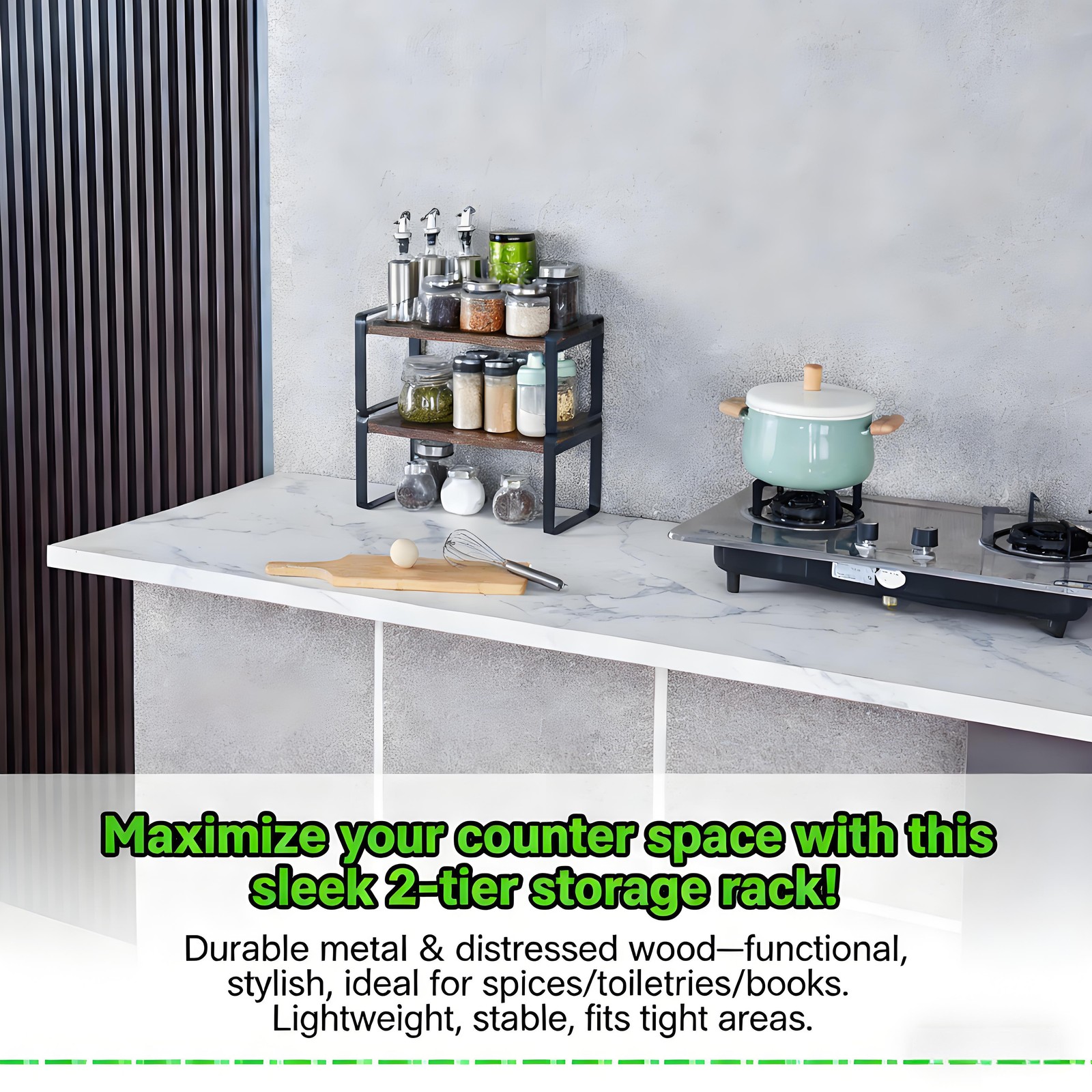 2-Tier Adjustable Storage Shelving Unit, Black Metal Frame with Rustic Wood-Effect Panels – Compact Organizer for Kitchen, Bathroom, Basement & Warehouse Maximize your space and add a touch of classic industrial charm with this versatile 2-tier storage shelf! Combining a sturdy black metal frame with rustic wood-effect MDF panels, this compact shelving unit is perfect for organizing small essentials in tight areas—from bathroom toiletries and kitchen spices to office supplies and basement gadgets. Its open-back design keeps items within easy reach, while the lightweight yet stable build ensures it fits seamlessly into any room. Classic Rustic-Modern Aesthetic for Versatile Decor This 2-tier shelf blends warm wood-look MDF panels with a sleek black metal frame, creating a timeless rustic-modern style that complements classic and contemporary home decors alike. The neutral color scheme and clean horizontal design add subtle visual appeal without overwhelming your space, making it ideal for displaying decorative accents or storing daily necessities. Whether placed in your bathroom, kitchen, entryway, or warehouse, it brings both function and charm to any setting. Sturdy & Durable Construction for Daily Use Crafted with a robust black metal frame and high-quality MDF shelves, this storage unit strikes the perfect balance between lightweight portability and reliable stability. The metal frame provides strong support to prevent wobbling, while the MDF panels resist daily wear and tear, making the shelf suitable for holding spices, toiletries, books, or small office accessories. Despite its sturdy build, it remains easy to move around to suit your changing storage needs. Space-Saving Design for Small Areas Measuring just 15.75”L × 7.87”W × 14.00”H, this compact 2-tier shelf is designed to maximize vertical space in tight spots. The two open shelves offer ample room for organizing clutter, while the open-back design ensures quick access to your essentials. It’s the ideal storage solution for small bathrooms, kitchen countertops, office desks, or basement corners—helping you keep your space tidy without taking up too much floor or counter space. Easy Assembly for Hassle-Free Setup This storage shelving unit requires simple assembly, with all necessary hardware and clear instructions included in the package. You can set it up in minutes without the need for extra tools, making it a convenient choice for busy homeowners or renters. The adjustable design adds extra flexibility, allowing you to customize the shelf to fit your specific storage needs. Detailed Product Specifications Color: Black (Frame) + Rustic Wood-Effect (Shelves) Material: Metal Frame + MDF Shelves Style: Classic Shelf Configuration: 2-Tier, Horizontal, Open Back Overall Dimensions: 15.75”L × 7.87”W × 14.00”H Product Weight: 6.39 LBS Package Dimensions: 18.50”L × 9.45”W × 3.74”H Package Weight: 7.00 LBS Suitable For: Bathroom, Kitchen, Basement, Warehouse, Office, Entryway Key Features: Compact Size, Lightweight & Stable, Easy Assembly, Versatile Storage Important Notes Manual measurements may result in minor reasonable errors. The actual color of the product may differ slightly from images due to lighting conditions or screen display differences. To maintain the shelf’s appearance, wipe the surface with a soft damp cloth and avoid using harsh chemicals. Worry-Free Purchase Guarantee We stand behind the quality of this 2-tier storage shelving unit with a 1-Year Warranty. If you’re not completely satisfied with your purchase for any reason, we offer a 30-Day Free Return & Exchange Policy. Shop with confidence, knowing you’re getting a stylish, durable, and space-saving storage solution for your home!