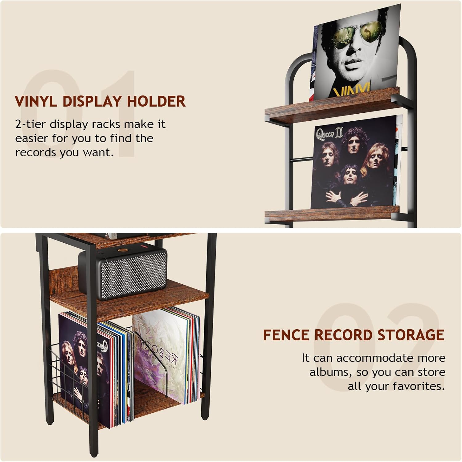 Store New Arrivals Add to Favorite View Feedback Contact Record Player Stand with Power Outlet, Turntable Stand with 2-Tier Vinyl Record Storage, Record Player Table up to 200 Albums, End Table for Vinyl Record Holder for Living Room Description Item model number LWT-changpianji03 Style Brown with power strip Color Black Brown With Socket Product Dimensions 11.81 x 16.93 x 64.96 inches Material Wooden boards, Iron Country of Origin China Item Weight 7.6 Kilograms Connectivity Technology USB Special Feature Has Power Outlets Included Components board 【Two-Tier Storage Rack】This two-tier storage rack features two wooden shelves: one for your record player and another for your radio or other small items. The stand is designed to hold small and medium-sized record players, offering ample storage space for records, speakers, audio equipment, books, magazines, and more. The record holder can accommodate up to 200 records. 【Record Player Stand with Power Outlet】Our record player stand includes built-in power outlets with 2 USB ports and 2 standard plug outlets, providing a convenient solution for all your charging needs. 【Vertical Design, No Need to Crouch】Dimensions: 16.93" L x 11.81" W x 64.96" H. This vertical design optimizes floor space and allows easy access to your records without the need to crouch. 【Organized and Easy to Find Records】The 2-layer vinyl record storage holder keeps everything organized, allowing you to separate your collection by genre or personal preference. This design makes it easy to find records and adds a decorative touch with your favorite record covers. 【Versatile for Various Scenarios】This versatile stand can serve as a vinyl record storage cabinet, vinyl holder display shelf, or record player table. Additionally, it can be used as a nightstand, side table, or end table in the living room or bedroom. The retro wood texture exudes mid-century charm, while the soft oxford fabric introduces a modern, simple element to your home decor. 【Easy Assembly】The record player stand comes with detailed instructions and all necessary tools for assembly. Each piece of hardware is labeled, allowing for easy assembly in 20-30 minutes without assistance. 【Solid and Sturdy Construction】Constructed from strong wooden boards, thicker iron, and adjustable feet, this record shelf is made with high-quality materials that are durable, sturdy, and secure. It's the perfect choice for supporting your record player and vinyl collection. 【100% Satisfaction Guaranteed】If you have any questions about the record player table, please feel free to reach out. We are committed to providing excellent customer service and will do our best to assist you. Product Description ABOUT US We offer the best prices around on high quality products. Our E-store includes media such as books, movies, music and games while offering electronics, toys, sporting apparel, clothing, tools, general home, garden items and more. SHIPPING We are always working hard to ensure your package arrives as soon as possible. Please understand that some factors like weather, high postal traffic, and the performance of shipping companies are outside of our control. We offer free shipping to the lower 48 states and ship within 2 business days of payment, usually sooner. We do not accept P.O. Boxes. Please provide a physical address. For shipping outside of the continental USA, we only use eBay's Global Shipping Program.The item is shipped to KY and then sent to the rest of the world. International customers are responsible for all duties and taxes. Continue to check out in order to calculate costs for shipping the item to your country. Messages regarding eBay's Global Shipping Program MUST be directed at eBay EXCLUSIVELY. RETURNS We offer a 30-Day Return Policy on items which you are not completely satisfied with. You have the option for a full-refund or an exchange of the item. No returns are available on items shipped outside of the USA. PAYMENT We accept PayPal. CONTACT US This page content is yet to come Please ad us to your favorite seller and visit again later Thank You CUSTOMER SATISFACTION We try our very best to make sure every customer is completely satisfied. If there's a problem, message us! We're happy to help. WE ACCEPT Copyright © 2021 AutoDS. | All Rights Reserved