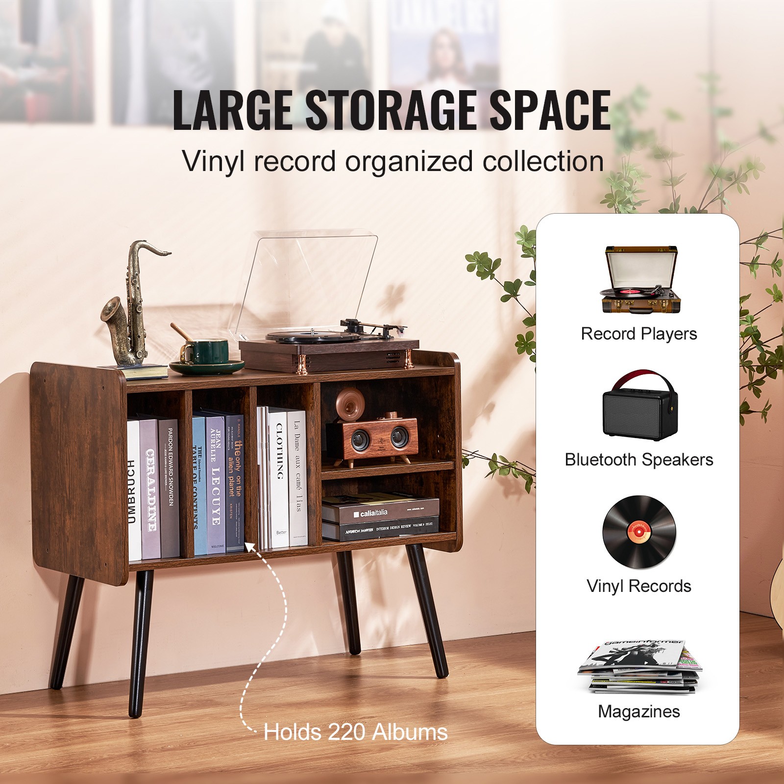 Record Player Stand-Showcases the charm of music! The raised side panels and spacious tabletop with open storage make it easy to organize your music collection, turning every vinyl record into a standout feature in your space. This record player stand provides maximum storage while showcasing your treasured collection. With adjustable shelves design, you can flexibly adjust the layout to organize your music collection, offering a personalized storage solution for every need. The U-shaped frame prevents records from tipping over or being damaged, while the solid wood support legs adapt to different floor types, carefully protecting each piece of your collection. The vintage brown panels not only enhance the aesthetic appeal but also provide sturdy support, capable of holding up to 150 lbs. This vintage record player stand offers solid support for your turntable while adding an elegant touch to your space. Crafted from premium solid wood, the support legs not only improve the overall feel of the product but also increase its weight capacity, ensuring your stand is both sturdy and stylish. Features & Details Elegant Display: The spacious tabletop, paired with an open storage rack, maximizes space utilization. Easily organize up to 220 albums, featuring side panels that prevent items from falling off the table, keeping your music collection neatly organized. Adjustable Shelves: This record player stand features adjustable shelving design, providing flexible storage options to easily categorize and organize your music treasures. Practical Details: A U-shaped frame is specifically designed to secure vinyl records, preventing them from tipping over or being damaged. Protect your precious collection, while the adjustable feet at the bottom allow you to customize the height based on the condition of your floor. Durable and Attractive: The retro brown panels, combined with solid wood support legs, offer not only aesthetic appeal but also durability, ensuring the stand’s stability and long-lasting use. This wood record player stand is both beautiful and functional, designed to withstand years of enjoyment. Versatile Applications: This record player stand can double as a nightstand, side table, or coffee table. It also can even become a decorative piece in your room, effortlessly blending vintage design into your home décor, creating a stylish and organized living space. SHIPPING ABOUT US PAYMENT RETURNS CONTACT WARRANTY Welcome to our eBay store. As a leading and emerging company in manufacturer and exporting business, we are specialized in Business and Industrial Products, Sporting Goods, Pet Products, Home and Garden products for more than 10 years. We believe that it is our vision and mission to provide innovative products with best service and competitive price to satisfy you. Our goal is to make sure that you can find exactly what you are looking for and make it easy for you to place your orders. We accept PayPal payment,PayPal Credit,Credit card or debit card and so on. Payment should be completed within 4 (Four) days of auction closing. Or unpaid dispute will be filed for closing auction. We will leave a positive feedback immediately after payment is received. We appreciate a positive feedback as much as you do. If for some reason there is any issue with the purchase, please contact us prior to leaving feedback, we will be glad to work together and provide a satisfying solution. Please be aware that PO Box cannot receive items, please DO NOT fill in the PO Box address. DELIVERY DAYS: 3-7 BUSINESS DAYS 3 BUSINESS DAYS SHIPPING OUT SHIP FROM CA & TX & NJ & GA & NC &OR WAREHOUSE California Warehouse: City of Industry, CA Texas Warehouse : Houston, TX New Jersey Warehouse : Perth Amboy, NJ New York State Warehouse: Perth Amboy, NJ Georgia Warehouse: Austell,GA North Carolina Warehouse: Grove NC Oregon Warehouse: AIRPORT WAY Portland,OR All of our items are backed with a 30-day return policy. We ensure all our items are new and in excellent condition prior to shipping. In case you receive the item that is not to the standards above, please contact us via e-Bay messages. All returns must be in new original condition as received and should be shipped with delivery confirmation Please note that all returns must be pre-approved by us. Unauthorized returns will not be accepted. If you need to return, please check twice to confirm the item not work and contact our customer service representative, let us know the detailed problem and send us some pictures for confirmation. We ONLY accept returns with original package. Please make sure that item has NO man-made sabotage. Used items will not be accepted for return. Email Customer Support: 9:00am-2:00am PST Sunday-Friday All emails will be responded to within 12-24 hours This item comes with 12 months Warranty from the date of customers purchased it. Special circumstances will be listed clearly in the listing. If your item has been damaged in transit or become faulty in warranty period, please email us with pictures or video to show the problem. Please do check everything carefully after you received the parcel, any the damage except DOA (Dead-On-Arrival) would not be covered if it's your fault. Replacement products are provided with the same warranty as the returned products. Record Player Stand-Showcases the charm of music! The raised side panels and spacious tabletop with open storage make it easy to organize your music collection, turning every vinyl record into a standout feature in your space. This record player stand provides maximum storage while showcasing your treasured collection. With adjustable shelves design, you can flexibly adjust the layout to organize your music collection, offering a personalized storage solution for every need. The U-shaped frame prevents records from tipping over or being damaged, while the solid wood support legs adapt to different floor types, carefully protecting each piece of your collection. The vintage brown p