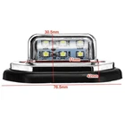 eBay *1. Light Color: White *2. Material: Plastic *3. Voltage: 12-24V *4. Size: as picture *5. Number of LEDs: 6 Pcs *6. Wiring: Red-Positive, Black-Negative Package Includes: 2 x License Plate Lights Features: *1. Used as side marker light or license plate light. *2. High brightness, clear to be seen at night. *3. Low power consumption and long use life. *4. Easy to install and durable in use. *5. Suitable for most truck, trailer, caravan, and etc. NOTE: The product may vary slightly in color and measurement.