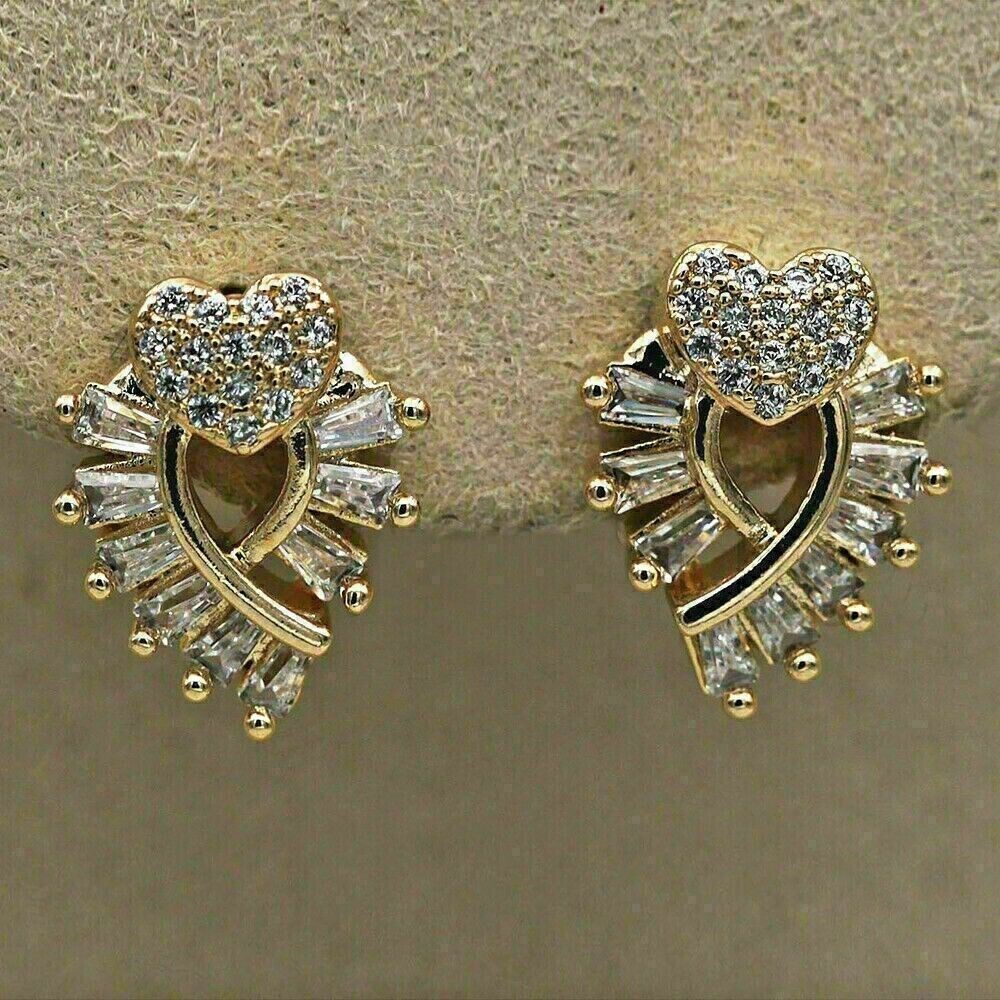 14K Yellow Gold Plated 2Ct Round Simulated Diamond Women's Stud Earrings Silver