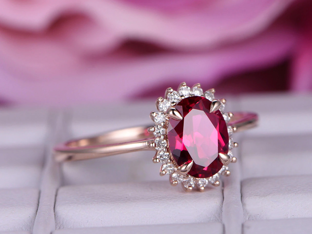 2ct Ruby Engagement Ring Stylish Inspired Halo Yellow gold plated Silver