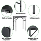 Overview: This small foldable table open size is L22.8"xW15.7"(58*40cm), heights are 10.3 inches/26.2cm, 18.9 inches/48.1cm, 27.5 inches/70cm in high with the adjustable legs. Pack size: 17.3"x13.2"x3.2"(44x33.5x8cm). Features: 3 Adjustable Heights for Various Occasions: The heights of folding table can be adjusted from 10.3 inches/26.2cm, 18.9 inches/48.1cm, 27.5 inches/70cm. You can sit on the lawn when picnic with the lowest hight. Or you can siting beside the table with chair when adjusted to the highest hight. Hassle-Free Assembly: Set up within 1 minute and folds up into a briefcase sized package for easy transport and storage. Small compact size doesn't take up a lot of room and great for store in the car, RV, backpacks, river rafts, motorcycle rear seats. Light&Portable: The lightweight folding table weights 4.92lbs(2.25kg) and folds up into 15.7"x12.2"x2.55"(40x31x6.5cm). The compact and lightweight design is perfect for home use when working, sturdy and outdoor use in camping, trip, sports events, etc. Multifunctional Table: This camping folding table is perfect for outdoor and indoor use. It can be used as BBQ grill side table, picnic table, card games table, serving table for dining, working and study table for adult and kids, fishing table. Specifications: Material: MDF table top, newer and thicker aluminum alloy tube frame Colour: black Weight: 4.92lbs/2.25kg Desktop size: 22.8 inches x 15.7 inches / 58x40 cm Adjustable height: can reach 3 heights, namely 10.3 inches/26.2cm, 18.9 inches/48.1cm, 27.5 inches/70cm. Folding size: 15.7 inches x 12.2 inches x 2.55 inches/40x31x6.5cm Expanded size: 22.8 inches x 15.7 inches x 27.5 inches /58x40x70cm Warning Tips: To adjust height by inserting and pulling out the legs. Use it on a flat place. Place it on the flat surface, gently press the table top in the middle to make sure it is flat. Don’t use this table in the wet or rainy condition. Be away from fire. Package Included: 1× Table 4× Extension legs 4× Table legs 𝟑-𝐀𝐃𝐉𝐔𝐒𝐓𝐀𝐁𝐋𝐄 𝐇𝐄𝐈𝐆𝐇𝐓𝐒: The heights of folding table can be adjusted from 10.51 inches/26.7cm, 18 inches/45.7cm, 27.55 inches/70cm. You can sit on the lawn when picnic with the lowest hight. Or you can siting beside the table with chair when adjusted to the highest hight 𝐋𝐈𝐆𝐇𝐓𝐖𝐄𝐈𝐆𝐇𝐓 & 𝐏𝐎𝐑𝐓𝐀𝐁𝐋𝐄: The folding table weights 4.92lbs(2.25kg) and folds up into 15.7"x12.2"x2.55"(40x31x6.5cm). The compact and lightweight design is perfect for home use when working, sturdy and outdoor use in camping, trip, sports events, etc 𝐑𝐄𝐋𝐈𝐀𝐁𝐋𝐄 𝐀𝐍𝐃 𝐒𝐓𝐔𝐑𝐃𝐘: Crafted from thicker aluminum alloy and MDF, this picnic table features deformation-resistant stability and durability, providing a solid surface for various activities. It has a maximum weight capacity of 66 lbs to ensure your safety 𝐄𝐀𝐒𝐘 𝐓𝐎 𝐀𝐒𝐒𝐄𝐌𝐁𝐋𝐄: Installation of the folding table takes only a few minutes, no tools required. With its quick-folding design and convenient carry handle, taking it everywhere you want 𝐖𝐈𝐃𝐄 𝐑𝐀𝐍𝐆𝐄 𝐎𝐅 𝐔𝐒𝐄: Beyond serving as a picnic table, this portable table is suitable for outdoor and indoor scene including beach outings, fishing trips, bedrooms, living rooms, and even in mini vans or trucks