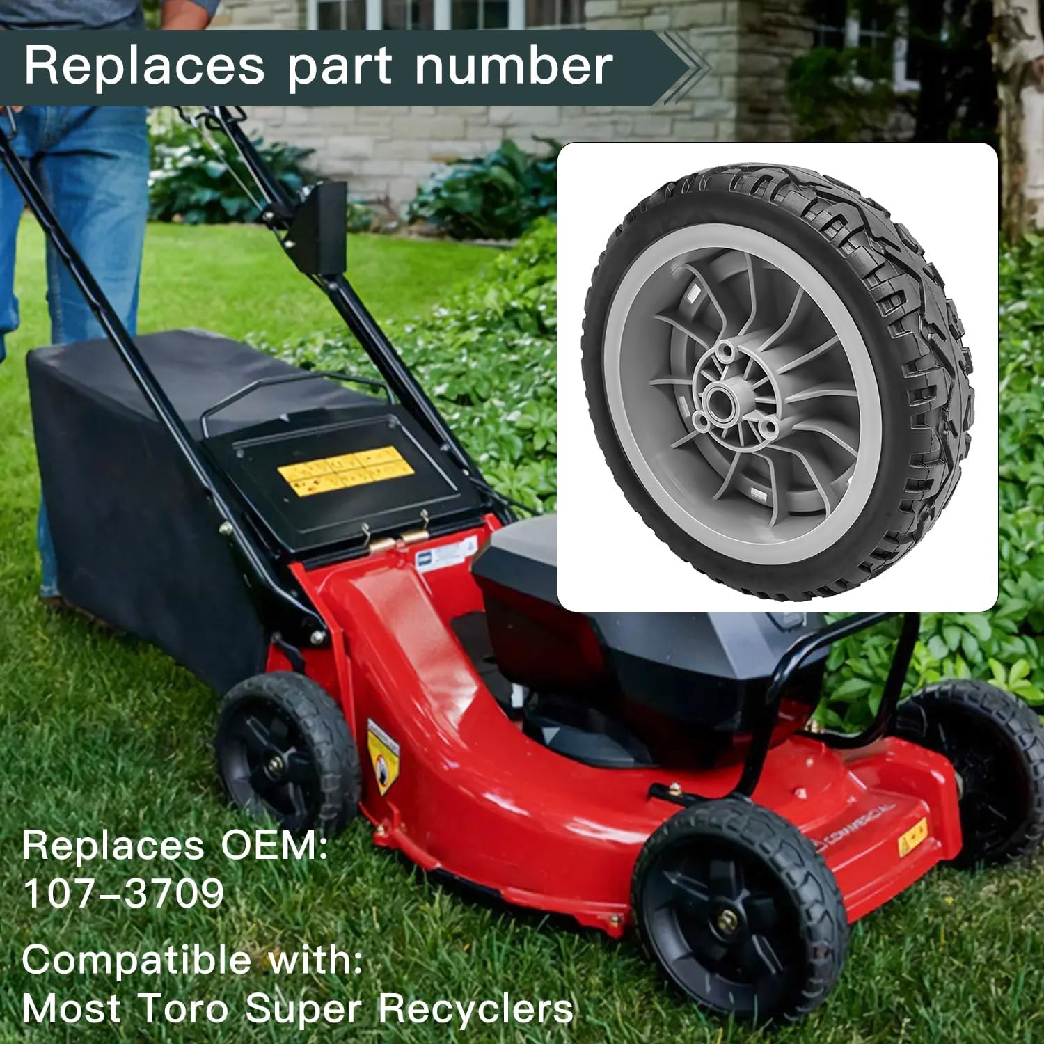 2pck Lawn mower Front Wheel for Toro Super Recyclers 107-3708 8 inch gray Product Details Brand: shiosheng Wheel Size: 8 Inches Pitch Circle Diameter: 0.5 Inches Item Diameter: 8 Inches Vehicle Service Type: Mower Color: gray Manufacturer: shiosheng Model: Lawn mowerFront Wheel Item Weight: 4.18 pounds Item model number: Lawn mowerFront Wheel Manufacturer Part Number: 107-3708 Brand: shiosheng Wheel Size: 8 Inches Pitch Circle Diameter: 0.5 Inches Item Diameter: 8 Inches Vehicle Service Type: Mower Color: gray Manufacturer: shiosheng Exterior FinishMaterial: noPlastic Wheel BackspacingRim Size: 8 Inches8 Inches PART NUMBER: 107-3708 Included: 2*Wheel, 8 inch wheel Fits Toro Model:20053 20054 20055 20056 20057 20058 20062 20090C 20091 20092 20093 20095C 20099 20380 20381 20383 20384 21381 Easy to install. To bolt up the new wFits Toro Model:20053 20054 20055 20056 20057 20058 20062 20090C 20091 20092 20093 20095C 20099 20380 20381 20383 20384 21381 heels just need a wrench. PART NUMBER: 107-3708