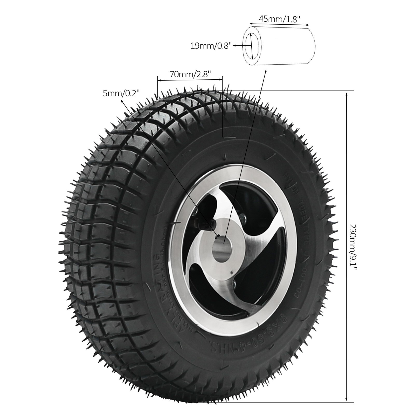 Scooter Tyre & Tube 9x3.50-4 or 9x3.5-4 Go kart Mini Quad Tire 19mm Bore Height of the hub: 45mm Tyre Size: 9x3.50-4 Item has been know to fit: Mini ATV quad 49cc 2-stroke go Kart Petrol scooter and electric scooter You will get :1x wheel inkfrog terapeak inkfrog terapeak Listing and template services provided by inkFrog