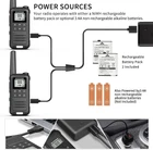 Main features: - Output power: ≤2W (channels 1-7and 15-22) - 12 NOAA Weather Channels - NOAA Weather Scan - 2 Channels Watch - Privacy Codes Scan and Store - Channel Monitor - Channel Scan Function - 155 Privacy Codes (50 CTCSS codes/ 105 DCS codes) - 10 Selectable Call Alerts - Hands-Free Operation (VOX) - Call Alert - Roger Beep Tone - Keypad Lock - Battery Level Meter - Emergency Strobe Light - Battery/Power Saver - Backlit LCD Display -Low Battery Audible Alert - TOT (Time out timer) - 2pin Kenwood headset jack - Type-C USB connector for charging - Keystroke Tones Package Including: 2 X Two way radios 2 X Belt Clip 2 X hand strap 2 X Batteries 1 X User Manual