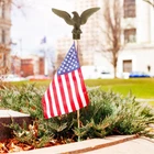 Description Elevate your flag display with our premium flag pole end decor! Made with and durable materials, this practical and safe ornament guarantees -lasting use for any commercial or public setting. Impress visitors with its elegant eagle shape and creative design, giving your office or establishment a refreshing new look. With its easy installation and convenient use, it's for displaying your collection of flags in various styles. Don't settle for a worn-out flagpole top ornament - replace it with our stylish and functional product, confidently making your flags look beautiful again. Features -Color:Golden -Material:Plastic -Size:11.00X6.50X1.90cm/4.32X2.55X0.75in Package Including 2 x Flag Pole Finial Ornament Premium Quality Material: Our flag pole head is made of metal material, which makes it sturdy and durable for -term use. This material ensures that the head can withstand harsh weather conditions and maintain its elegant design Elegant Design: The eagle design of our flagpole head adds a touch of elegance to your garden or yard decor, while providing a patriotic look. The details of the head make it stand out and enhance the beauty of your flag display Versatile Usage: This flag topper is not only any flag display but also fits on most standard flagpoles, making it a versatile accessory for all kinds of flags. Whether youre displaying your countrys flag, a sports teams flag, or a decorative garden flag, this head will enhance its charm Easy Installation: Our flagpole tips are designed for easy installation, and they securely attach to the top of your flagpole. The flag head is also lightweight, making it easy to install and remove from the pole when needed Durable and Weather-resistant: Our flag pole top ornament is constructed to withstand the toughest outdoor conditions. The metal material can withstand winds, rain, and snow, making it durable and -lasting. This flag pole accessory is weather-resistant and built to last, ensuring a beautiful flag display for years to come