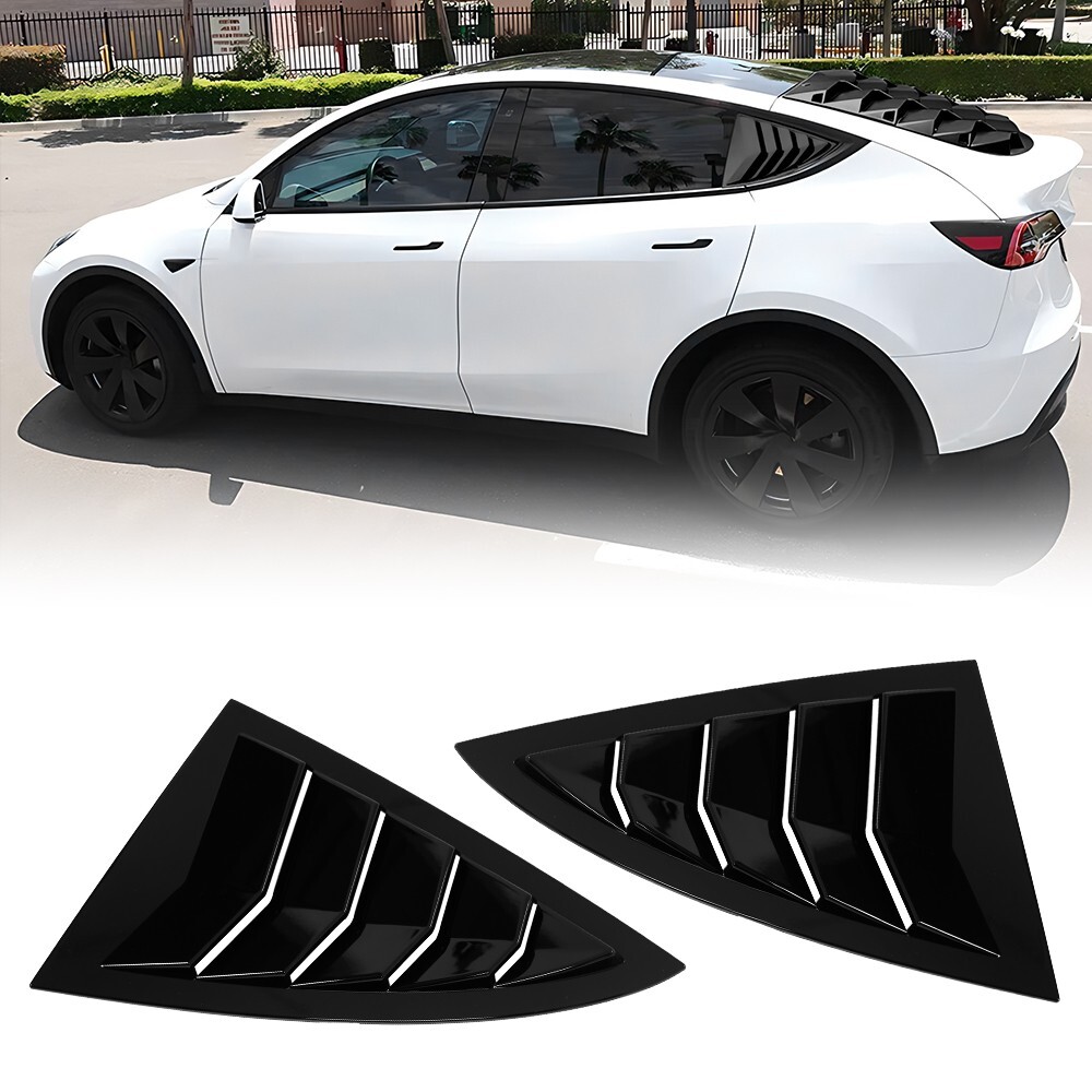 Fitment: For TESLA MODEL Y 2020-2024 Package Include: 2pcs of side rear window louver cover trims, Installation manual is not included Material:ABS plastic Condition:100% Brand new Color:Gloss black Country of origin:China Features: Easy installation High quality ABS plastic material Fashionable trim style Visually enhance the performance look Perfect fitment Including left and right side Increase privacy and minimizing interior temperature Installation video reference is recommended