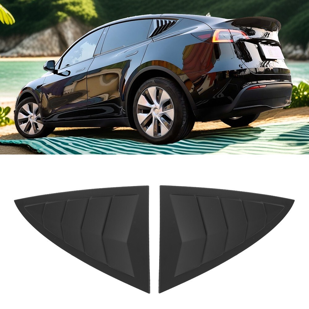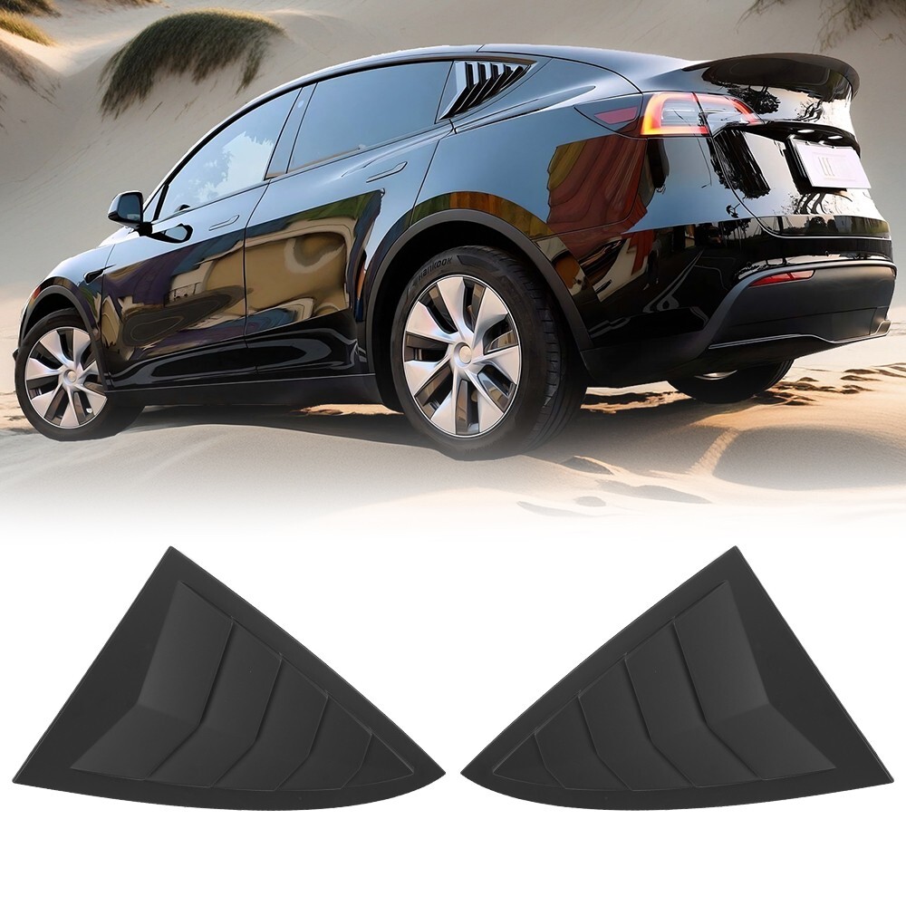 2pcs For 21-24 Tesla Model Y Matte Black Rear Side Window Louver Sun Cover Vent Fitment: ●For Tesla Model Y 2020-2024 Package Include: ●1 Pair of side rear window louver cover trims ●Installation instruction is not included. Installation video reference is recommended Item Description: ● Material: ABS plastic ●Condition: 100% Brand new, never been used or installed ●Color:Matte Black ●Country of origin: China Features: ●Easy installation ●High quality ABS plastic material ●Fashionable trim style ●V isually enhance the performance look ●Perfect fitment ●Including left and right side ● I ncrease privacy and minimizing interior temperature