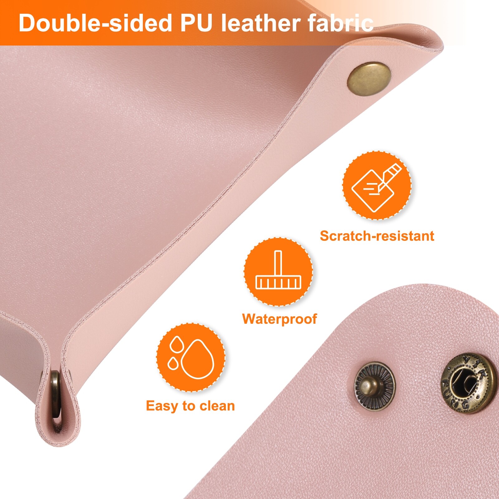 Document This tray is made of double-sided PU leather, which is soft and comfortable, with excellent scratch resistance and waterproof performance. In addition, the leather material is easy to care for, just wipe it gently with a damp cloth to restore its luster.The storage tray adopts a clever four-corner snap design, which can be easily folded, unfolded and placed flat in the bag, which is very suitable for outdoor activities and business travel. It can be used as a mouse pad when unfolded and as a key tray when snapped, which is convenient for storing or taking out items, adding beauty to your home and office desktop.Folding trays can not only store coins, keys, dice but also carry many other things, such as desktop organizers, pens, rulers and headphones, as a jewelry tray to carry jewelry and headwear. It can be placed in the entrance, dressing room, desk, bedside table, bedroom or living room.Please choose a storage tray of appropriate size according to the suitable size of the items you want to store, to avoid not suitable size causing the items to not fit in or fall out easily. 2pcs PU Leather Valet Tray Unisex Folding Small Catchall Tray, Pink This tray is made of double-sided PU leather, which is soft and comfortable, with excellent scratch resistance and waterproof performance. In addition, the leather material is easy to care for, just wipe it gently with a damp cloth to restore its luster. The storage tray adopts a clever four-corner snap design, which can be easily folded, unfolded and placed flat in the bag, which is very suitable for outdoor activities and business travel. It can be used as a mouse pad when unfolded and as a key tray when snapped, which is convenient for storing or taking out items, adding beauty to your home and office desktop. Folding trays can not only store coins, keys, dice but also carry many other things, such as desktop organizers, pens, rulers and headphones, as a jewelry tray to carry jewelry and headwear. It can be placed in the entrance, dressing room, desk, bedside table, bedroom or living room. Please choose a storage tray of appropriate size according to the suitable size of the items you want to store, to avoid not suitable size causing the items to not fit in or fall out easily. Hot Item Payment We accept eBay payment. Please do not email us to ask for other payment option. We appreciate prompt payment and look forward to your business in the future. Unpaid item will be filed without receiving payment in 7 days from listing ended. Shipping Usually we ship your order out within 24 hours in business day. For shipping and handling charges (S&H) for specific item, please refer to the item listing page for more details. Please make sure your shipping address is correct. We are not responsible for any loss in transit if a wrong address is provided. Return Policy Returns for exchange are permitted and must be initiated by the buyer within 30 days upon receipt. If you would like to return your product(s) for repair / replacement / refund, please kindly contact our customer service representatives via email for an authorized RMA number. Your returned product(s) will not be processed without a completed RMA. About Us We are continually expanding our product selection to better serve your need. We look forward to providing the best sevice to you - our dear customers, so take a look around our store and find the product that you want. You can put your trust in us! If you need any help or have any suggestions, please don't hesititate to contact us anytime , we will reply you within 24 hours and try the best to help you. Description Policy 2pcs PU Leather Valet Tray Unisex Folding Small Catchall Tray, Pink This tray is made of double-sided PU leather, which is soft and comfortable, with excellent scratch resistance and waterproof performance. In addition, the leather material is easy to care for, just wipe it gently with a damp cloth to restore its luster. The storage tray adopts a clever four-corner snap design, which can be easily folded, unfolded and placed flat in the bag, which is very suitable for outdoor activities and business travel. It can be used as a mouse pad when unfolded and as a key tray when snapped, which is convenient for storing or taking out items, adding beauty to your home and office desktop. Folding trays can not only store coins, keys, dice but also carry many other things, such as desktop organizers, pens, rulers and headphones, as a jewelry tray to carry jewelry and headwear. It can be placed in the entrance, dressing room, desk, bedside table, bedroom or living room. Please choose a storage tray of appropriate size according to the suitable size of the items you want to store, to avoid not suitable size causing the items to not fit in or fall out easily. Hot Item Payment We accept eBay payment. Please do not email us to ask for other payment option. We appreciate prompt payment and look forward to your business in the future. Unpaid item will be filed without receiving payment in 7 days from listing ended. Shipping Usually we ship your order out within 24 hours in business day. For shipping and handling charges (S&H) for specific item, please refer to the item listing page for more details. Please make sure your shipping address is correct. We are not responsible for any loss in transit if a wrong address is provided. Return Policy Returns for exchange are permitted and must be initiated by the buyer within 30 days upon receipt. If you would like to return your product(s) for repair / replacement / refund, please kindly contact our customer service representatives via email for an authorized RMA number. Your returned product(s) will not be processed without a completed RMA. About Us We are continually expanding our product selection to better serve your need. We look forward to providing the best sevice to you - our dear customers, so take a look around our store and find the product that you want. You can put your trust in 