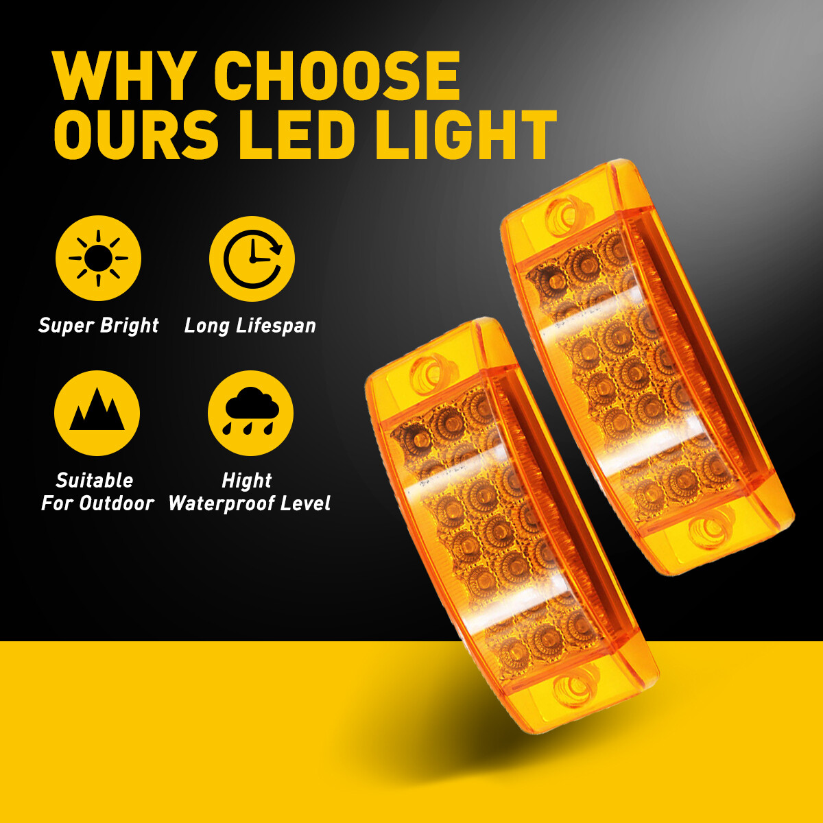 Specifications LED quantity: 21 LEDs per unit Material:ABS Housing + PC Lens Light color: Amber Voltage:12v-24v Service life:50000h+ Fits for: most of buses, trucks, trailers, Lorry, Pickup, caravan, and lorries etc Features: *High brightness: High brightness light outputs for improving driving safety. *Waterproof design: The waterproof design of the product works even under extreme conditions especially in rainy or foggy days.(IP67) *Great design: Compared with other brands, our back wire lead is added proper glue to make it completely seal without affecting the surface mount. *Application 2x Amber 6" 21LED Side Lights Marker Clearance Turn Signal Lights Trailer Truck Specifications LED quantity: 21 LEDs per unit Material:ABS Housing + PC Lens Light color: Amber Voltage:12v-24v Service life:50000h+ Fits for: most of buses, trucks, trailers, Lorry, Pickup, caravan, and lorries etc Features: *High brightness: High brightness light outputs for improving driving safety. *Waterproof design: The waterproof design of the product works even under extreme conditions especially in rainy or foggy days.(IP67) *Great design: Compared with other brands, our back wire lead is added proper glue to make it completely seal without affecting the surface mount. *Application It can be used as clearance light, side marker light, rear marker light, turn signal light, tail light etc. *Energy-saving with lower consumption. *Connection Black connects to negative Red wire: normal red light White wire: flash red light Brown wire: dynamic red light Packaging include: Side Marker Light*2 ---------------------------------------------------------------------------------------------------------------------------------------------------- Why choose us →Location Description To improve your buying experience and ensure fast delivery, Your order will be shipped from the warehouse located in either new jersey or california that is closest to your address. If you have any questions, Please contact us. Thank you for your support ! → Superior Quality We have dedicated quality inspectors, and each product will be carefully inspected after production. Make sure the product is in good condition and can be used normally. Item Specifics Brand AUXITO Lighting Technology LED Suitable For Side Marker Light Light Color amber Number of Bulbs 2PCS Type Side Marker Light Assembly Features Super Bright, Waterproof, Low Consumption,High Energy Manufacturer Part Number CBD-20LED-2Y-4W Fitment 1 car trucks, trailers, horse trailer, travel trailer Fitment 2 boat trailer, RV, camper Pickups,Truck, SUV Function Clearance lamp, side mark lamps, identification Lamps etc Voltage 12v-24v Placement on Vehicle Front, Left, Rear, Right Universal Fitment Yes Fitment Type Direct Replacement Waterproof Rate IP67 Manufacturer Warranty 2 Years Bulb Life Hours Up to 50000 Hours Material ABS Housing PC Lens LED quantity 21 LEDs per unit OE/OEM Part Number / Performance Part No Country/Region of Manufacture Unknown Payment 1. Instant PayPal payment is the preferred method of payment. We also accept payment via PayPal, DebitCard, Visa, MasterCard, Discover. 2. Before payment,Please keep the consistency of Paypal address and ebay address. 3. Quantity orders are welcome! Shipping 1. All items will be shipped in 24 hours after receiving your payment . 2. We ship this item to US only via USPS first class mail. It usually takes 3-6 working days to deliver. Returns 1. We offer free return & money back guarantee. If you are not satisfied with your purchase for any reasons, you can return the item for refund or replacement/exchange. All returns must include the original packaging. (Please refer to our return policy for details.) 2. If you don't return goods within 60 days from date of purchase, your right to cancel will be revoked. Any items damaged because of incorrect installation will not be refunded. Please contact us for return or troubleshooting help prior to returning any products. Contact Us 1. Negative feedback will not help resolve any problems you have, please contact us via eBay messages before leaving negative feedback, our customer service will make best effort to help you with the issues. 2. We maintain high standards of excellenceand strive for 100% customer satisfaction! Feedback is very important to us. We request that you contact us immediately Before you give us neutral or negative feedback, so that we can satisfactorily address your concerns. FAQ 1. Can you tell me when my order will be shipped? Actually we will ship the item within 1 business day after receiving orders. But USPS need to take longer time to update tracking info and arrange delivery during the challenging time for now. If your order was not shipped more than 3 business days, please contact us with your order number to get quick support. 2. My item has not arrived, what's taking so long? Sometimes items take longer than expected, especially if it's going far or to rural area. Check with your post office to see if your item has been held up. Sometimes USPS will not update a tracking number until it has arrived at its destination. If your item still has not arrived after a few days, let us know so we can double check for you and help solve it asap. 3. Do you ship to Canada, United Kingdom, Australia, etc.? Unfortunately, we could only ship to United States (Domestic shipment) at the moment. 4. I bought the wrong items/ the items were not compatible with my vehicle. Please contact us via ebay message to get quick support. DESCRIPTION PAYMENT SHIPPING RETURN POLICY CONTACT US Hot Item For 1996-2022 Toyota Sequoia 4Runner LED 24SMD License Plate Tag Light Lamp USD 13.29 LED License Plate Light Assembly For Chevrolet 2018-2022 Equinox 15-20 Suburban USD 14.24 4X Marker 12V Side Indicator Lights LED Truck Red Trailer Signal Running Light USD 13.99 2pcs For Ford 2019-2021 Ranger EcoSport AUXITO LED License Plate Light Assembly USD 11.96 2pcs Pigtail Female Wire Socket 3157 S Two Harness 