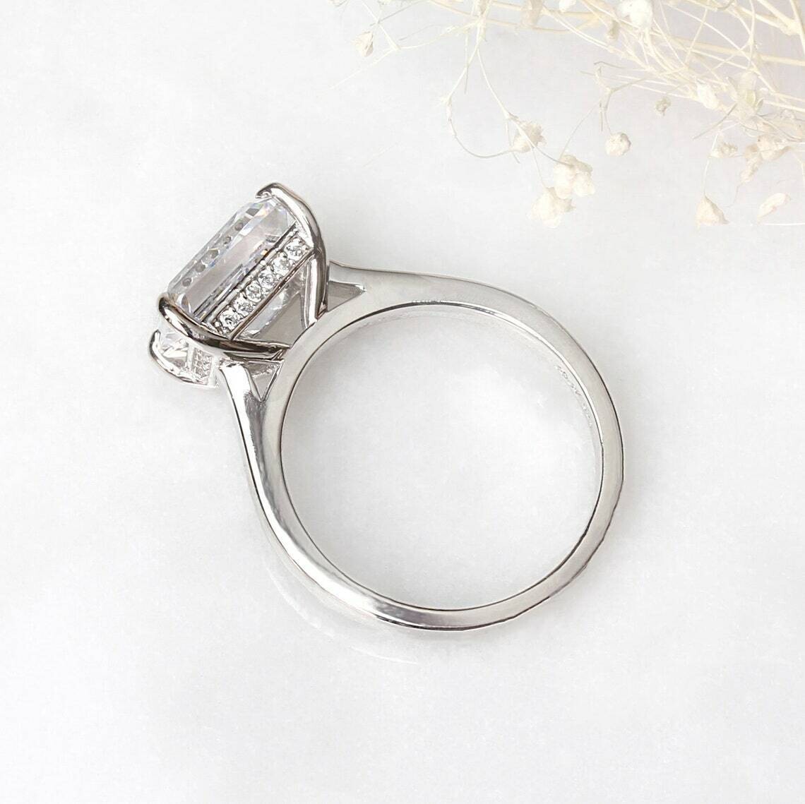3 CT Emerald Simulated Diamond Solitaire Engagement Ring 14K White Gold Plated