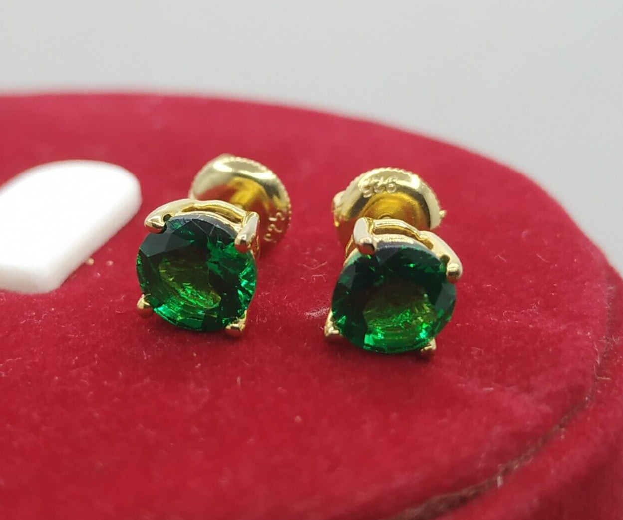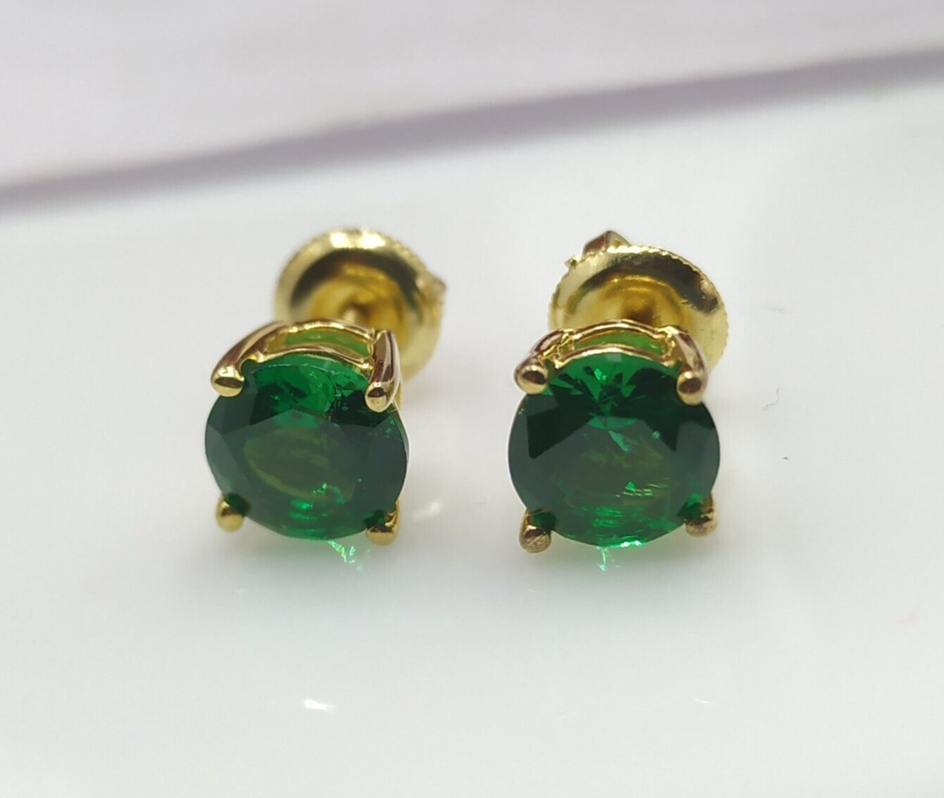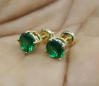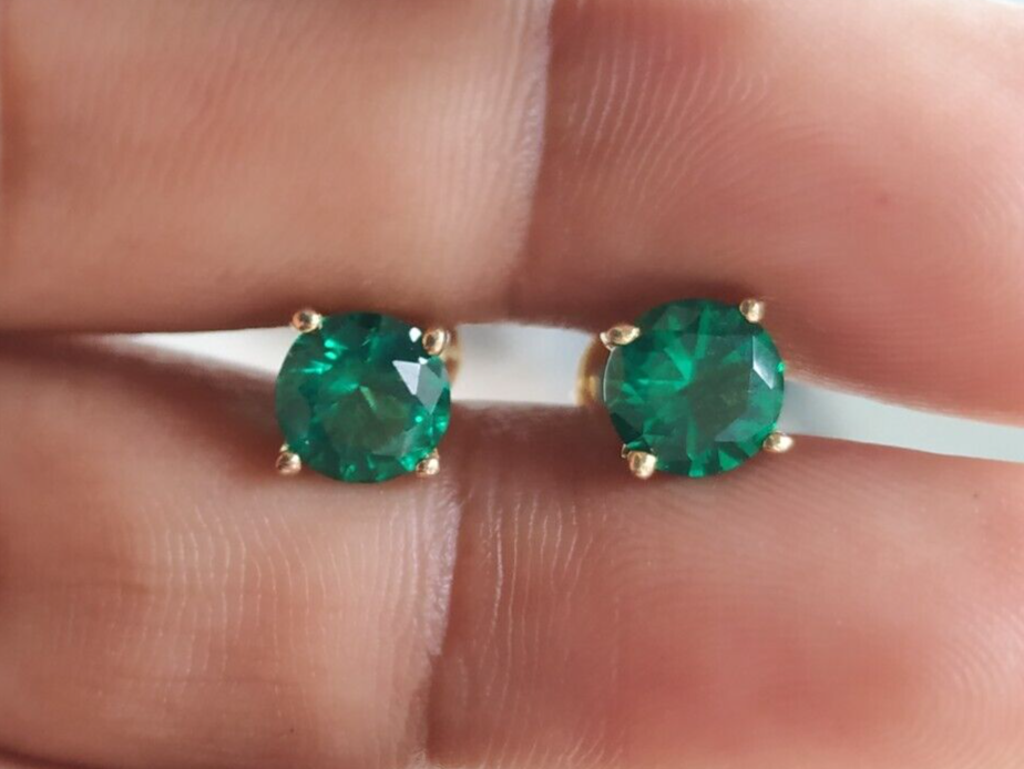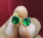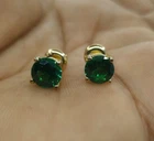 Welcome To Swara Ecom 3 Ct Simulated Emerald Stud Earrings Round Cut Solitaire 14K Yellow Gold Silver ITEM DESCRIPTION Design Type - Solitaire Stud Earrings Type of Metal - Solid, Real, Sterling Silver Metal Finish - 14K Yellow Gold Plated Silver Metal Stamp - 925 Gem Type - Man-Made/Simulated Diamond Total Carat Weight - 3.00 TWC (1.50 ct each) Stone Shape - Round Shape Stone Name - Emerald Man-Made Diamond Color - Green Origin of Stones - Simulated Country of Manufacturer - India Regarding Our Simulated Diamonds Our Simulated Diamond/Lab Created Gems have the same brilliance and fire as natural diamonds. Our simulated diamonds are individually Hand Cut and Hand Polished by master jewelers. Because of their superior quality, it is almost impossible to the naked eye to tell them apart from a real diamond. They have the same optical characteristics, radiance and beauty as a natural stone; and because they are not created from carbon, they don't have any imperfections, inclusions or feathering. Their brilliance and sparkle are virtually the same as an Ideal Flawless Diamond. Customization This piece of jewelry is a made to order item which take approx. 10 days time to make before we ship. Pictures have been enlarged to show details Please read the item specification above before making any purchases. You will get the jewelry specified in the item specification table Provided by eBay. If you have any questions, please message us. Custom Engraving Block font engraving is available for rings without diamonds. Up to 25 characters including spaces can be engraved on the inside of the ring. Only $20. PAYMENT POLICY Payment is accepted only through PayPal. eBay will open unpaid item case if payment is not received within 3 days. In case there is a delay in payment kindly contact us and we can always make an adjustment. SHIPPING POLICY We ship worldwide to almost all major countries. United States Shipping Charge is Free Canada Shipping $19.99, International Shipping Charge will be $39.99 with additional $2.99 for each. Delivery within US & UK takes 5-10 business days after item is shipped. This depends on the mail service we send it by. Please note that we may ship via different mail services. Other International shipments are usually delivered within 2 to 3 weeks, depending on the time taken to clear customs. We are not responsible for any delays due to customs. Kindly note that all countries charge a duty on imported goods. A customs clearing charge is also imposed in many countries. We are not responsible for the amount of duty or any other related charges. Kindly provide us complete address for smooth transaction. Our Handling Time is 10 days RETURN POLICY All returns must reach us within 14 days after the item was delivered to you. The item must be in the original condition and with the original tags attached. We will issue a refund or send a replacement within 3 business days of delivery back to us. Buyer pays return shipping FEEDBACK We want to ensure that you are completely satisfied with your purchase. If not, then please let us know before leaving any feedback and allow us to work with you to completely resolve any issues that you might be facing. You can return the item for a full refund LESS shipping, within 14 days of item(s) receipt date.