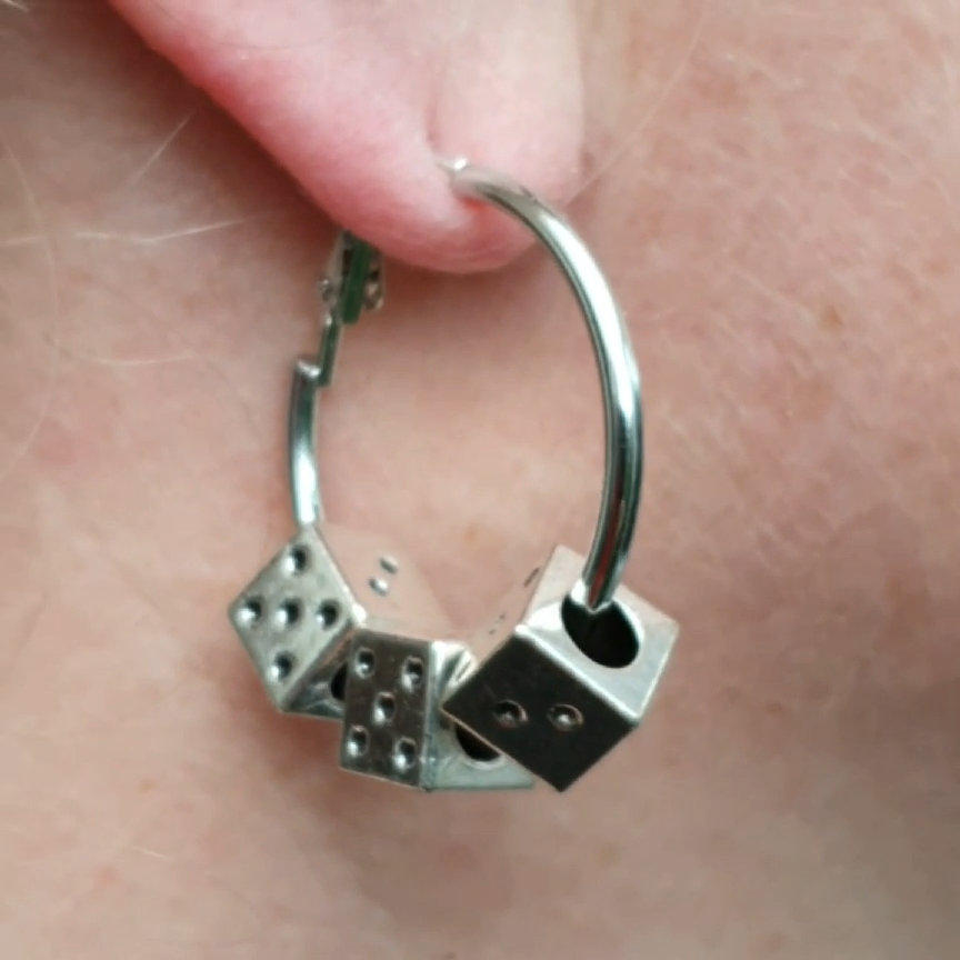 7mm x 7mm x 7mm x 7mm Dice - Three Of Per Earring The Dice Only Has 4 Faces - 30mm Clip ring Earrings Please be advised to take your item off before showering and bathing. Not doing this can advance tarnishing of your item(s) Costume jewellery is not for constant wear. Weeks of wear can build up oils, We advise you take them out/off for a good clean . ONE SUPPLIED ***** ***** ***** ***** ***** ALL PHOTOS © eclectic shop uk ltd NO UNAUTHORISED USE PLEASE RESPECT THIS. WE DON'T LIKE TO USE IMAGES OTHER THAN OUR OWN WE SPEND TIME AND TAKE PRIDE IN THEM. Thank you ***** ***** ***** ***** ***** One Supplied EXPORT AND CUSTOMS NON UK CUSTOMERS ***** ***** ***** ***** ***** Please note, we are not responsible for your customs fees. All CN22 and CN23 forms are filled out direct from the platform. (with every delivery company used depending on your order) We will post your item with all paperwork and once posted it is your responsibility for the fee to be paid if applicable eclectic shop uk ltd ® and its logo are a registered trademark FOR HYGIENE REASONS AS PER UK LAW WE SUPPLY ALL OUR BODY JEWELLERY ( EARRING, PIERCINGS) IN SEALED PACKETS. PLEASE VIEW THE ITEM, SHOULD YOU CHANGE YOUR MIND WE CAN ONLY REFUND IF THE PACKET IS STILL SEALED. SHOULD YOU RETURN AN OPENED ITEM WE CANNOT REFUND YOU.