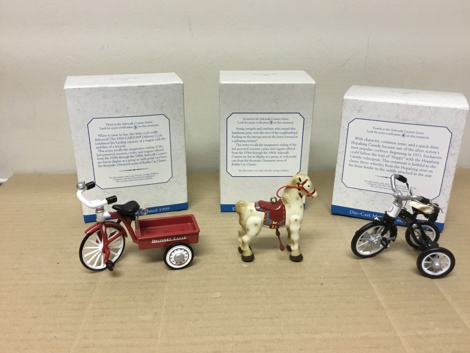 You are bidding on a lot of: 3 - Hallmark Ornaments "Sidewalk Cruisers" Seri es w/boxes 1998 - #2 / 1999 - #3 / 2000 - #4 Please check out my eBay store for more cd's, one-of-a-kind autographed items, baseball - basketball - football - single cards - lots and sets, Steiner Sports autographed helmets, jerseys, baseballs, photos, display cases, supplies and much more.