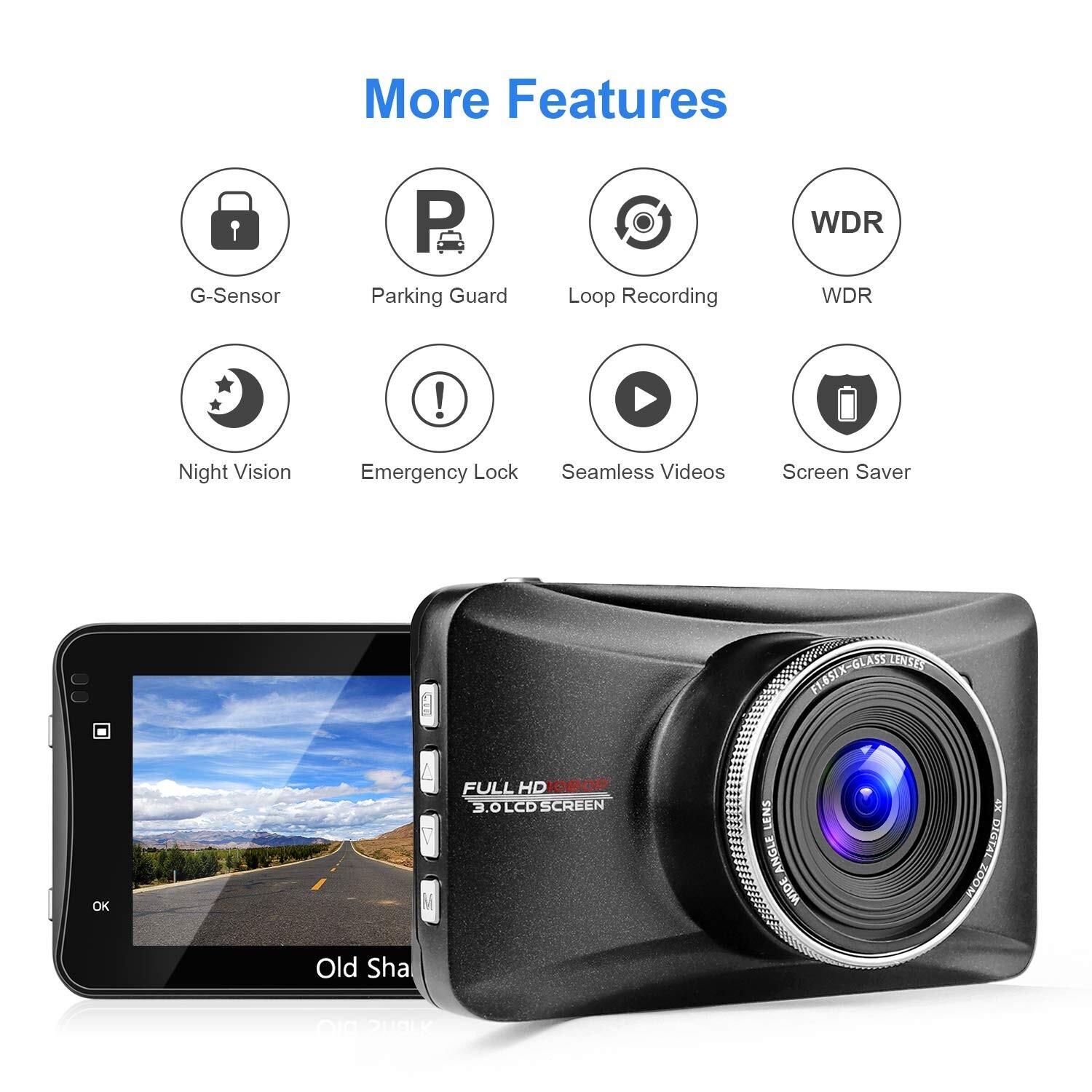 Dash Cam 1080P Full HD 3 Inch Dashboard Camera Car Recorder with 32GB Card 170°Wide Angle Dashcam Driving Loop Recording G-Sensor ✓ Free 60 Day Returns ✓ Free Express Shipping Description: OldShark is a brand professional in car video product, with 17 years' Experience, we dedicated to creating car Camera that improve the safety, and reliable of every driving. It provides OEM and ODM services for numerous famous brands around the world. Little money saves you big trouble OldShark GS505 dash cam equipped with Novatec best 96650 chipset, and with retardant metal material and shock absorption design, it has better quality compare these equal price dash cam in market. Features: Ultra HD Dash Cam for CarsWith super HD video resolution 1080P and superior fluently recording. Old Shark Dash Cam 1080p deliver clear images videos even at high speed or in darkness, it will be safe and reliable with OldShark dashcam. 170 Super Wide AngleAdopt Sony Sensor and F1.6 Big Aperture wide angle lens, real 170 degree wide field of view, the dash cams for vehicles reduces the blind spots, captures more details and reserve the real scene. Lock AccidentBuilt in G-sensor, dashboard cameras can automatically detects a sudden shake/collision of car, save and lock the accident footage, which provides proof in case of an accident claim. Your Best Driving CompanionSeamless Loop Recording, Impact Detection, Protection for Important Files, Parking Guard, Motion Detection, Auto On/Off, Time Stamp, Screensaver,the camera dash recorder satisfy your need for daily driving. Easy to Install and USEOldShark Dashcam comes with 32GB Memory card car cigarette charger - Plug and Play, simply mount this dash cam to windshield, connect the power cable, no need to worry even for a first time user. Product Details: Brand: Old Shark Model Name: GS505 Orientation: Front and Rear Vehicle Service Type: Car Connectivity Technology: USB Special Feature: 1080P Video Capture Resolution: 1080p Included Components: dash cam, car charger, suction mount, manual Mounting Type: Suction Mount Color: Black Product Dimensions: 3.46 x 1 x 0.59 inches Item Weight: 4.4 ounces Item model number: A1OS-GS505-T032 Is Discontinued By Manufacturer: No Connectivity technologies: USB Special features: 1080P Other display features: Wireless Color: Black Whats in the box: dash cam, car charger, suction mount, manual Manufacturer: Old Shark Country of Origin: China Date First Available: March 30, 2016