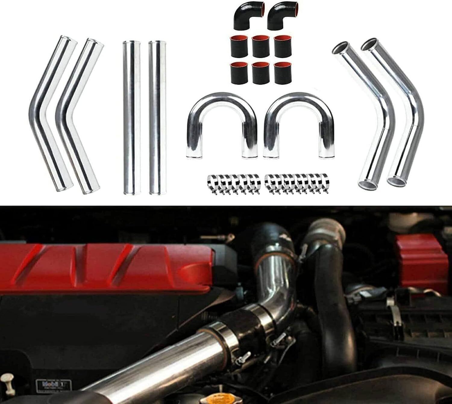 3" Polished Intercooler Piping w/ U Pipe Black Silicone Coupler + Clamp Kit DIY Item Description Multiple compatibility: Universal DIY Kit for Turbo / Supercharger / etc.... This kit is mainly used for automobile refitting the turbocharger cooling inter-cooled device pipe of the suite and admission line. Note: This is Not Bolt-On or Plug & Play! modify, cutting or bending may required depending on your application Feature: This tube set is made of Aluminium, which has excellent durability and reliability. The surface of the kit is Polishing, ensuring long-term stability Function: Intercooler Pipe and Boot Kit play an important role in forced air induction system, helping to improve engine performance and fuel economy while ensuring system reliability and safety. Through effective air cooling and solid connections, they can ensure that the engine runs in the well condition Easy installation: Clamp installation design makes the installation process simple and fast. The Boot Kit mainly consists of hoses and clamps, which are used to connect the intercooler pipes and other intake system components, ensuring a solid connection between the various parts Specifications Condition:100% Brand New Warranty: 90 Day Free Return:30 Day Aluminum Pipe Length: 23.62" / 60cm Thickness: 0.7inch/1.8mm Material: Aluminum Color: Silver Surface Finish: Oxidation Corrosion resistance and light weight Made from High Quality Light Weight T6061 Aluminum Package Included 3" (OD) Straight aluminum pipe x2 3" (OD) 90 Degree aluminum pipe x2 3" (OD) 45 Degree aluminum pipe x2 3" (OD) U Shape aluminum pipe x2 3" Straight silicone coupler x6 3" 90 Degree silicone coupler x2 Stainless Steel T-Bolt clamps x16 As pictures show FAQ: I purchased by mistake, how do I cancel the order? Please contact us ASAP. If the item has not been shipped out we can cancel the order for you. If the item was shipped out you can refuse the package and wait for the item to return to us. I received your item but it does not fit or is defective Please contact us so we can assist you on the matter. Buy with confidence Our quality is based on meeting the requirements of the manufacturer and improvement them in design problems manufacture. NOTE: (1)It would be highly appreciated if you might contact us first once you have any problems concerning the items. And you can expect all the issues would be resolved ASAP! (2)Please let us know before you send us the neutral/negative feedback that wont help to finish the issues. And I will definitely try my best to provide the best solutions which would meet our satisfactory! (3)According to the distance of the receipt address items would be sent from CA or NJ