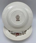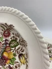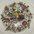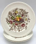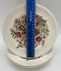 Three Pretty Rim Soup bowls in the Pomona Pattern by Johnson Brothers Measure just over 7 1/2 in across One bowl has a chip on the rim Colors are bright and bowls are in very nice condition. Box 127