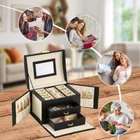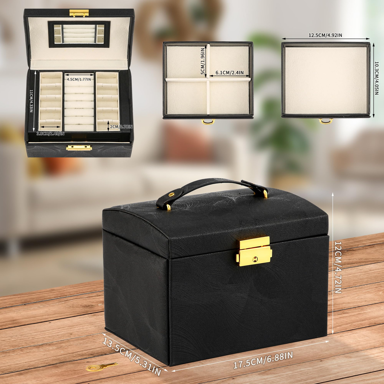 This jewelry box is made of high quality PU material with a unique pattern on the leather surface, very stylish and retro. The interior is made of soft pearl velvet and comes with a mirror on the lid. There are separate compartments, earring openings, ring slots, watch pads, side hooks for hanging necklaces, suitable for all kinds of jewelry. Safe and portable, the jewelry box is lockable and comes with a portable handle on the outside of the box, making it easy to carry on the go. Can be used as a surprise for your beloved ones, or treat yourself! 【MULTIFUNCTIONAL】This jewelry box has separate ring slots and earring storage area, 1 drawer with removable dividers, 1 large capacity drawer, 2 extendable necklace panels with 8 hooks for hanging necklaces. 【HD Mirror】The lid of the jewelry box comes with a mirror, which is convenient for you to wear your jewelry and organize your makeup, no need to look for another mirror. 【Safe and Portable】 The jewelry box can be locked, we have a key for you to keep your jewelry safe at all times. Meanwhile, the jewelry box comes with a portable handle, which is very convenient to carry out. 【High Quality and Durable】This jewelry box is made of high quality PU material, the leather surface with unique pattern, very fashionable and retro. The interior is made of soft pearl velvet, which can protect your jewelry from damage. 【Perfect Gift】On birthdays or anniversaries, this exquisite jewelry box is undoubtedly the best choice for your wife and girlfriend, they will feel your thoughtfulness.