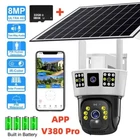 9MP Camera Product specifications: Sensor: 3MP+3MP+3MP Lens: 3.6mm Infrared light: upper infrared 12 lights, white 10 lights, lower infrared 10 lights, white 4 lights Low illumination: 0.01Lux Effective distance: 8-10 meters Switch: automatic Termination (s): N/A Thunder sensor: None 2. Video imaging Lens pixel: 3 million+3 million+3 million Compression format: H.264 High profile Effective resolution: 1920x1080P Visual angle: 105 degree Frame rate: 1080P 18FPS Mirror flip function: Yes Visual mode switching: ultra clear&high-definition&automatic 3. Audio Voice communication: two-way intercom Audio input: built-in microphone Audio output: built-in speaker 4. Network mode Network interface: wireless (WiFi) or 4G, without network port Network protocols: IP, TCP, DHCP WPS Domain name resolution: Yes Port transmission: P2P Platform: Dual Stream DHCP: Automatic 5. Wireless Output power: 802.11g: 10.95dBm (0.012w) 802.11b: 10.74dBm (0.012w) 802.11nHT40: 11.58dBm (0.014w) 802.11nHT20: 11.07dBm (0.013w) Frequency: 2412-2462MHZ 6. Antenna Antenna: omnidirectional antenna Antenna gain: 3dBi Network security: WEP, WPA-PSK, WPA2-PSK FCC identification number: 2APD7-R9820 Bandwidth: 40000 khz Modulation: DSSS, OFDM 7. Pan tilt Pan tilt angle: horizontal left and right: 355 degrees, vertical up and down: 110 degrees“ 8. Control Management Remote control: App remote Multi user management: Share up to 5 users Split screen view: up to 4 split screens display Mobile applications: IOS&Android 9. Alarm and notification methods Mobile detection: yes Information push method: Mobile phone automatic push (1 image, 3 second video) Information push interval: 5 seconds APP name: IPC360 home Storage method: Amazon Cloud (overseas) Alibaba Cloud (mainland)/TF Dual Lens Camera Features : 1. 2K 4MP (2MP+2MP) HD Dual Lens Network IP Camera For Indoor&Outdoor 2. Dual light source design, built-in 8 pcs infrared light + 8 pcs white light, night vision infrared and night vision full color can be set; 3. Pan&Tilt: horizontal 0~350 degrees, vertical 0~90 degrees; 4. 2.4G WIFI + RJ45 network port for Internet access; 5. power supply DC 12V/2A 6. Dual Design, Support SD / TF storage and cloud storage; 7. Two-way voice intercom, two-way video synchronous recording and playback 8. Humanoid detection/vehicle detection/pet detection/other detection 9. Automatic tracking/movement alarm, alarm output sound and light linkage; 10. AI intelligent algorithm to achieve video 3D positioning and continuous tracking of target alarms; 11. Support Android/IOS APP remote management (V380 Pro). Real Two Way Audio Notice: APP: V380 PRO does not support 10XZOOM 3 Lens Camera Ensure your home is protected from every angle with our cutting-edge surveillance technology. The Double 3MP WiFi Camera features not one, but two lenses and three imaging screens, providing a 360-degree view with no blind spots. two of these lenses serving as decorative elements with the LED lights working properly.Keep a watchful eye on every corner and enjoy the peace of mind that comes with comprehensive security. VTS01 3 Lens Camera 3 screens shows on the V380 app Three images can be viewed simultaneously, and each image can be individually enlarged. Real time alerts Set up monitoring areas in advance, conduct actual testing, and promptly push alarm information. IP66 Waterproof / Dustproof The camera is equipped with IP66 case , which is waterproof, sun-proof and dust-proof. It is suitable for any environment. Clear Two Way Audio Built-in microphone and speaker / Customized new speakers with loud volume; You could talk to anyone nears the camera ( Warn someone to leave your house ). Advanced H.265 Video Compression H.265 (HEVC) doubles the coding efficiency compared with its predecessor H.264. H.265 video saves around 50% of the bit rate at the same quality of coding.H.265 only need less bandwidth,faster loading speed,more smooth video,Lower bite rate,higher image quality! 10X Zoom(Both 3 cameras support zoom) you can switch from 1X to 10X zoom instantly;it can fast zoom in or zoom out without lag;watch far and near images Simultaneously through Picture in Picture,don't miss a detail. Full Color Night Vision: When the white LED light is on, the camera will display colorful vision at night, and there are three night modes for you to choose. Ai Human Detect Alert Quickly finds human targets and immediately sends a notification to your phone, letting you see what happens anywhere. It only detects the human shape and will not trigger falsely for objects such as cars and trees. PTZ Control by APP Rotates 355° Horizontally and 90° Vertically.You can control it in the APP directly whenever you want and wherever you are.