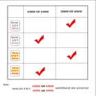 Silicone Band 1 . Made from high-quality silicone, comfortable and durable for good hand feeling which is waterproof, Breathable, Durable. 2 . Sports band comes with Apple Watch Lugs on both ends, which locks onto Apple Watch Band Interface precisely and securely. Easy and direct installation and one button removal. 3 . Pin-and-tuck closure ensures a clean fit .Metal parts made with hypoallergenic nickel free stainless steel. 4 . The size can be adjusted according to the circumstance of individual wrist. Silicone Sport Band fit for wirst size: 38mm/40mm S/M size: fits for 130-180mm wrists, 38mm/40mm M/L size: fits for 150-200mm wrists. 42mm/44mm S/M size: fits for 140-190mm wrists, 42mm/44mm M/L size: fits for 160-210mm wrists. Nylon Band 1 . Soft, breathable, and lightweight Sport Loop band. 2 . The double-layer nylon weave has dense loops on the skin side that provide soft cushioning while allowing moisture to escape. 3 . Simple and easy to install and remove, no tools needed. 4 . Unique hook and loop fastener design, just stick and lock your smartwatch band easily. 5 . The size can be adjusted according to the circumstance of individual wrist. Nylon Sport Band fit for wirst size: 38mm/40mm Size: Suitable for 5.12"-7.28"(133mm-190mm) wrist 42mm/44mm Size: Suitable for 5.7"-8.66"(145mm-220mm) wrist (Attention: Nylon Watch Band doesn't have S/M or M/L size.) Compatible With: For Apple Watch Series 6 / Series 5 / Series 4 / Series 3 / Series 2 / Series 1 / SE / Include: 3 Pack Watch Bands (PS: The Apple Watch is not included)