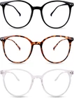 Rstigiker 3 Pack Blue Light Blocking Glasses, Round Frame Anti Blue Light Glasses, Light Weight Clear Lens Reading Glasses for Women Men, Computer Glasses, Anti Glare Eyeglasses, Anti Glare Glasses Specifications: Frames Material: PC Color: black, clear, leopard print Lens Type: HD Size: as the picture show Package includes: 3 x Blue Light Blocking Glasses Note: Manual measurement, please allow slight errors on size. The color may exist slight difference due to different screen display.