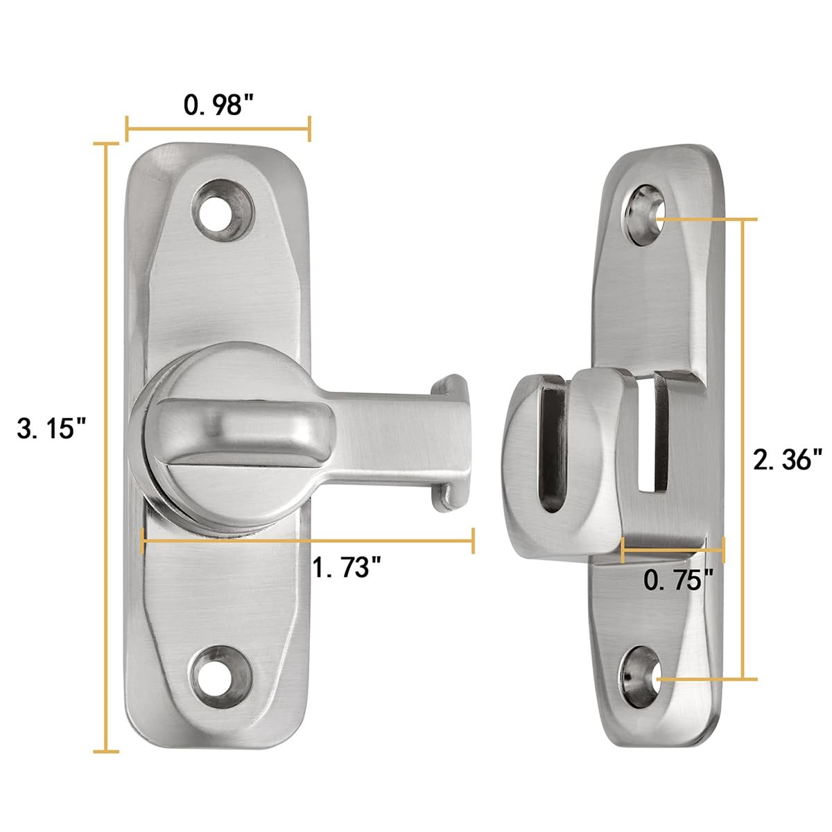 【Upgraded Door Lock】— The 90/180 Degree barn door lock is a space-saving solution that can be mounted at 90° or 180° angles, providing a secure fit in tight spaces. Its innovative snap-on design with a flexible hand-tightening feature ensures a snug and safe closure without the need for additional space. 【High-Quality and Corrosion-Resistant】— Expertly crafted from solid zinc alloy, our sliding barn door lock boasts a multi-layer finish that enhances its longevity and shields against corrosion. This meticulous construction promises a reliable performance for extended periods. 【Protection for Home and Hearth】— Designed with a snap-on flip mechanism, our door locks offer a secure barrier for your family and property. It keeps your little ones and pets safely contained while also ensuring privacy and peace of mind. 【Universal Fit for Enhanced Security】— Compatible with a broad spectrum of doors, this latch is suitable for various settings including bedrooms, balconies, garages, windows, barn doors, kitchen cabinets, gardens, bathrooms, and offices. It fortifies your home security, deterring unauthorized access and ensuring the safety of children and pets within. 【Effortless Installation Process】— The door latch is adaptable for both left and right installations and can be easily mounted at 90° or 180° angles. With the provided screws, align and secure the lock to your door frame after marking the correct height and hole positions, ensuring the rotation card is properly spaced for smooth operation. 【Package Included】— 3 * 90/180 Degree barn door lock,12 * Screws. 【Upgraded Door Lock】— The 90/180 Degree barn door lock is a space-saving solution that can be mounted at 90° or 180° angles, providing a secure fit in tight spaces. Its innovative snap-on design with a flexible hand-tightening feature ensures a snug and safe closure without the need for additional space. 【High-Quality and Corrosion-Resistant】— Expertly crafted from solid zinc alloy, our sliding barn door lock boasts a multi-layer finish that enhances its longevity and shields against corrosion. This meticulous construction promises a reliable performance for extended periods. 【Protection for Home and Hearth】— Designed with a snap-on flip mechanism, our door locks offer a secure barrier for your family and property. It keeps your little ones and pets safely contained while also ensuring privacy and peace of mind. 【Universal Fit for Enhanced Security】— Compatible with a broad spectrum of doors, this latch is suitable for various settings including bedrooms, balconies, garages, windows, barn doors, kitchen cabinets, gardens, bathrooms, and offices. It fortifies your home security, deterring unauthorized access and ensuring the safety of children and pets within. 【Effortless Installation Process】— The door latch is adaptable for both left and right installations and can be easily mounted at 90° or 180° angles. With the provided screws, align and secure the lock to your door frame after marking the correct height and hole positions, ensuring the rotation card is properly spaced for smooth operation. 【Package Included】— 3 * 90/180 Degree barn door lock,12 * Screws.