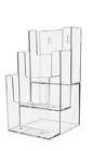 Brochure Holder for 4"W Trifolds 3 Pocket Tiered Display Product Features: Holds 4"W literature Brochure Pocket Dimensions: 4"W x 1.5"D Overall Dimensions: 4.75"W x 5.5"D x 9"H Multi tiered countertop or hanging display stand for trifold brochures, pamphlets, takeout menus and flyers. Proudly made with premium high quality materials Marketing Holders multi pocket literature holder provides a simple yet effective tabletop or hanging display for pamphlets, brochures, rack cards and flyers. Use these holders to inform your customers or clients about hours of operation, today's specials or general informational notices. Our heavy duty advertising stands can be used on flat surfaces such as tops of a table, counter or desk near entrances and exits or reception areas so customers are prompted to take one when visiting your business. This versatile holder comes with 2 pre-drilled keyholes and is designed to easily hang on smooth surfaces. Elegantly showcase attraction brochures while saving space and keeping areas looking professional, clutter free and organized. The organizers are made of durable clear plastic such as acrylic, plexiglass, lucite and PETG polycarbonate materials. The brochure holder features a clear see-through pocket that offers a view of your printed media. These display holders are ideal for placement in doctor offices, hotels, amusement parks, government and business buildings, community centers, welcome centers or travel agencies. This stand is durable for use at colleges and universities, convention centers, restaurants, sports stadiums across the USA. *All sizes are approximate *Hanging Hardware Included *Under no circumstances is Marketing Holders responsible for any actions involving hanging products using self purchased or provided hardware. It is up to the purchaser to make sure they are using the hanging hardware correctly. We will also not be responsible for the product if it cracks during the hanging process or if it falls and breaks. Return Policy 30 Day Return Policy: By purchasing our product you are agreeing to our return policy, so please read! Perfect returns (NO used merchandise) on stock items are accepted within 30 days of delivery. Any visual appearance that the product is used will result in 00 refund. All returns are subject to a 20% inspection, re-boxing and restocking fee. All returns must be repacked and returned in their original packaging for protection. (MUST return on pallet if received on Pallet) Packages being returned should be insured by you for your protection No credits are issued on shipping costs. Absolutely no returns accepted on custom order displays, including orders with custom text, imprinting or graphics Return Policy 30 Day Return Policy: By purchasing our product you are agreeing to our return policy, so please read! Perfect returns (NO used merchandise) on stock items are accepted within 30 days of delivery. Any visual appearance that the product is used will result in 00 refund. All returns are subject to a 20% inspection, re-boxing and restocking fee. All returns must be repacked and returned in their original packaging for protection. (MUST return on pallet if received on Pallet) Packages being returned should be insured by you for your protection No credits are issued on shipping costs. Absolutely no returns accepted on custom order displays, including orders with custom text, imprinting or graphics All packages must be opened and inspected within 72 hours of delivery, we must be notified immediately if there are any damages to your product. Photos are required for refunds or replacements.