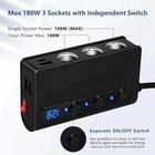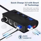 Feature: 1.Quick Charge 3.0+ 5V 2.4A,This car adapter has 3 usb ports and 1 Type C PD Port,1 port Quick Charge 3.0 and 2 5V 2.4A Fast Charging, It built-in SMART IC technology intelligently detects your devices to deliver optimal fastest charging speed,can compatible with your iPhone,Android Phone,iPad ,Tablet 2.Voltage Monitor,Once the vehicle power center is on and turning on the main switch, the LED display will monitor your car battery automatically. Moreover, the LED display will display if the car battery voltage is under 10.5V or higher 14.6V, give you a safe driving. 3.On-Off Independent Power Button, A main switch for whole car charger and 3 independent on/off switch for each socket. Just press the button to turn on or off to prolong the lifespan of device without affecting other charging devices. 4.180W Cigarette Lighter Power Sockets,This car charger provide a total power up to 180W, and single socket power is not exceed 100W. All the sockets are manufactured in accordance with international standards, can fit for multiple car appliances like Dash Cam, GPS, Sat Nav, Seat Heater, Car Humidifier, Car Fan etc. Package: 1 X 3-Socket Cigarette Lighter Splitter 1 X User Manual