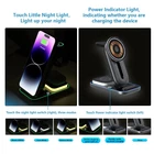 【3 in 1 Magnetic Wireless Charging Station】: Our 4 in 1 wireless charging Docking can charge for iPhone 12&13&14&15 series, apple watches and Airpods simultaneously, also has night light function,needn't for extra chargers for each item. Say goodbye to the messy cords and redundant cables that make your desk and nightstand neat and organized. 【Multi-function Charging Stand】: 15W Fast Magnetic Wireless Charger only takes about 2-3 hours to give your cell phone, watch, and earbuds a full charge. This mobile phone wireless charging station supports 360 ° fixed and slides up and down, it have Silicone base, keep your devices from scratching, rubber pads, and feet protect your device from sliding. 【Multi-protection Design】: The fast wireless charger with over-current protection, over-voltage protection and over-temperature protection as well as foreign object detection function, can prevent over-charging damage of equipment battery. No worries about the damage to your devices and battery life. 【Adjustable Night Light】: The wireless charging dock station with the design of Three-mode light colors, such as warm light and Cold light, natural light, can adjust the light color freely. If you want to turn off or turn on the light, just touch-sensitive key. Light helps you find your phone easily at night.(You will get 1*Magnetic Wireless Charger station, 1*USB Type-C Cable, 1*User Manual, 1*15W QC 3.0 Adapter.) 【Compatibility】: The wireless charging station with a Type-C port to support 3 devices charge simultaneously. Fast Charging Compatible for iPhone 15&14&13&12 series and for Mag-Safe case, for Airpods all series, for iWatch Series 7/ 6/ 5/ 4/ 3/ 2/ SE. (Note: Please connect the USB C port before charging devices).100% satisfaction guarantee! If you are not completely satisfied with our magnetic wireless charger, you can get a refund or a replacement within 24 hours. You will get 12-month warranty.