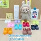 The doll is not for sale. This product is a set of 3 pairs of multicolored doll shoes designed specifically for Labubu dolls with a height of 17 cm. The shoes are intended for a 6-inch fashion doll with black eyes. Manufactured in 2025, this accessory set is perfect for adding style and versatility to your doll's wardrobe, allowing for creative play and unique outfit combinations. Perfect for doll enthusiasts looking to customize and accessorize their Labubu dolls.