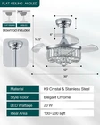 30 Inch Crystal Fandelier Ceiling Fan with Light Dimmable Chandelier Ceiling Fans with Lights for Living Room Bedroom,Chrome Product Details Color: Chrome Size: 30 inch Brand: Fejanical MPN: LS0300130C UPC: Does not apply EAN: Does not apply Brand: Fejanical Color: Chrome Electric fan design: Ceiling Fan Power Source: ac Style: Modern Product Dimensions: 30"D x 30"W x 14.5"H Room Type: Bedroom, Home Office, Kitchen, Living Room Special Feature: Adjustable Height, App Operable, Color Changing, Dimmable, Timer Recommended Uses For Product: Air Circulation, Lighting Wattage: 20 watts Product Dimensions : 30 x 30 x 14.5 inches; 12 Pounds Item model number : LS0300130C Date First Available : March 10, 2025 Manufacturer : Fejanical Customer Reviews: 4.4 4.4 out of 5 stars 51 ratings Brand: Fejanical Color: Chrome Electric fan design: Ceiling Fan Power Source: ac Style: Modern Product Dimensions: 30"D x 30"W x 14.5"H Room Type: Bedroom, Home Office, Kitchen, Living Room Special Feature: Adjustable Height, App Operable, Color Changing, Dimmable, Timer Recommended Uses For Product: Air Circulation, Lighting Wattage: 20 watts Finish Type: Polished Voltage: 110 Volts Item Weight: 12 Pounds Indoor/Outdoor Usage: Indoor Model Name: ceiling fan Control Method: App, Remote Manufacturer: Fejanical Installation Type: Semi Flush Mount Size: 30 inch Item Weight: 12 pounds Item model number: LS0300130C Item Package Quantity: 1 Shape: Round Finish types: Polished Number of Lights: 1 Specific Uses: Home Special Features: Adjustable Height, App Operable, Color Changing, Dimmable, Timer Shade Color: clear Shade Material: Crystal Light Direction: Downlight Batteries Included?: No Batteries Required?: No Type of Bulb: LED Color Temperature: 6000 Kelvin Date First Available: March 10, 2025 Elegant 2-in-1 DesignThis 30-inch chandelier ceiling fan combines the charm of a crystal chandelier with the practicality of a ceiling fan. Designed with retractable blades and clear crystals, it adds a mordern touch to bedrooms, living rooms, or dining rooms. Adjustable LED LightingFeatures a built-in dimmable LED light with adjustable color temperatures ranging from warm white (3000K) to daylight (4500K) and cool white (6000K). This crystal chandelier ceiling fan can be customized to create an elegant and cozy ambiance, adapting to the varying needs throughout the day. Remote & APP ControlEquipped with both remote and mobile app control, allowing you to adjust fan speed (6 levels), set timers (1/2/4 hours), and switch between light modesall from the comfort of your seat. Quiet DC Motor with Reverse FunctionThis fandelier ceiling fan with light powered by a pure copper DC motor for quiet and stable operation. Switch between downdraft mode in summer for cooling and updraft mode in winter to circulate warm air more effectively. Designed for Daily ComfortIdeal for small to medium-sized rooms, this modern retractable blades chandelier fan provides a balanced blend of air circulation and ambient lighting. Its retractable blades automatically fold in when the fan is off, preserving the elegant chandelier look.