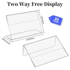 ✌Small Sign Holder: This price tag holder is made of durable acrylic material and measures 2.36" X 1.57" (6cm x 4cm). It provides ample space to display information while maintaining a compact footprint. You can easily to move and arrange for optimal visibility. ✌Elevate Display: This set of 30 L-shaped acrylic card holders is perfect for displaying business name cards, price tags, food labels, and more. Whether you're organizing a retail display, labeling food items at a buffet, or identifying seating arrangements at an event, these clear card display stands offer a practical stylish solution. ✌Easy to Use: This food label stand is designed in an L shape, making it easy for you to insert and take out labels. The sleek and transparent design allows your content to take center stage. The transparent exterior allows people to easily view information, making these acrylic sign holders ideal for retail displays, trade shows, events, and office settings. ✌Durable Material: Crafted from durable acrylic providing a sturdy base for your signage or cards. Each sign holder is wrapped in plastic to prevent scratching. Note: Please tear off the protective film on the surface of the product before use. ✌Satisfy Various Needs: These sign display holders can be used for offices, restaurants, trade shows, reception areas, schools, weddings, business counters, and any event to display signs, flyers, papers, images, brochures, ads, and photos.