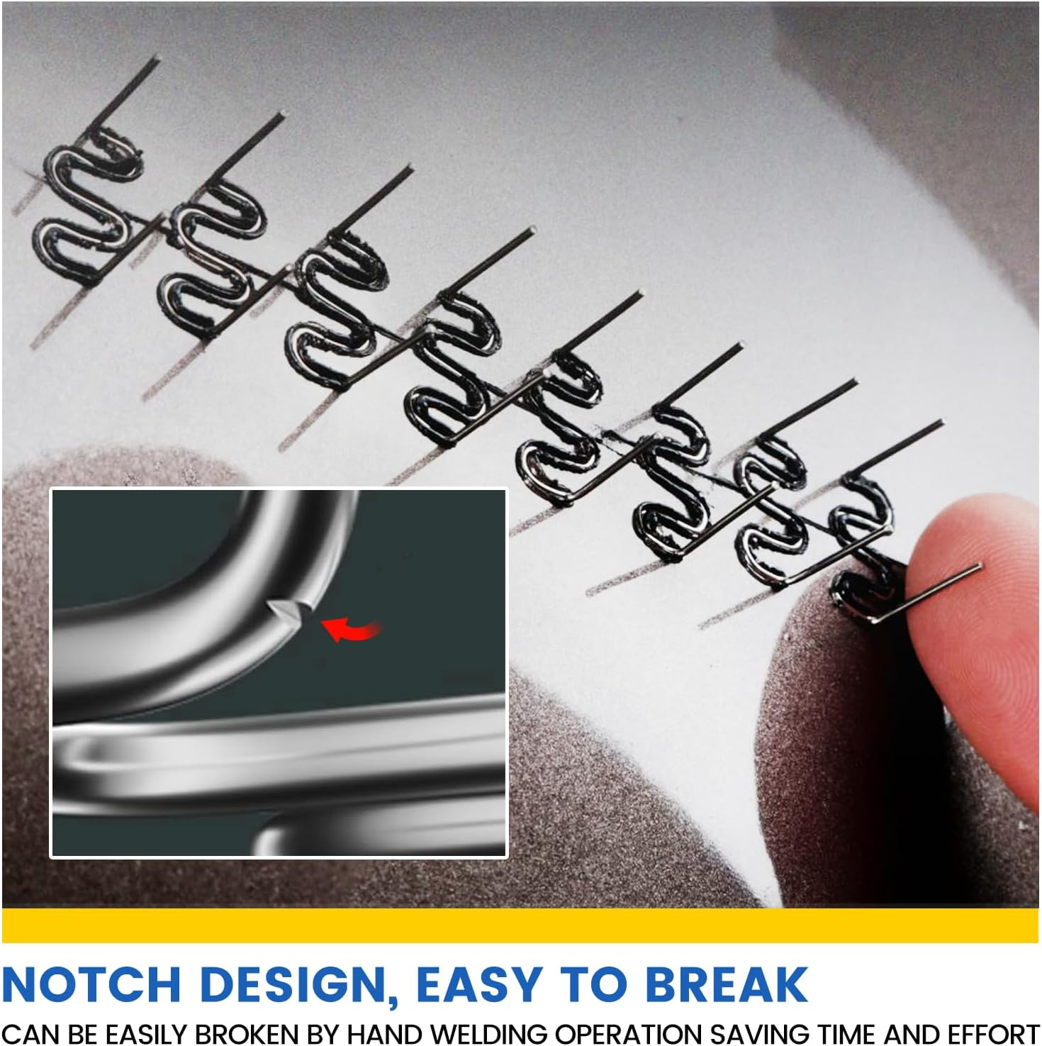 Package Includes 3000pcs Staples:500 X 0.6 mm flat staples,500 X 0.8 mm flat staples,500 X 0.6 mm wave staples,500 X 0.8 mm wave staples,500 X 0.6 mm outside corner staples,500 X 0.8 mm inside corner staples,1 X transparent packing box Quality Material:This automotive repair staplers use stainless steel as material, which features with advantages of high hardness, anti-oxidation and anti-corrosion to provide you with long-term service; With low melting point,nice fluidity,hardness,toughness and sealing,they are the first choice for repairing holes and stitching up long cracks. Plastic Repair and Welding:The welding effect of the hot repair stapler is full and smooth,so you can use it to overlap cracked areas together where added strength and increasing service life,and also suitable for various plastic repair/welding Simple to Operate:The automotive welding repair stapler is pre-cut and easy to remove the tail piece,saving cutting and grinding time;Besides,it is a practical tool that can provide you with an nice experience Wide Practicality:The car auto bumper hot stapler can be easily welded without any flux,and suitable for using with hot stapler to repair most plastic materials,such as ABS,PVC,nylon etc Product Description