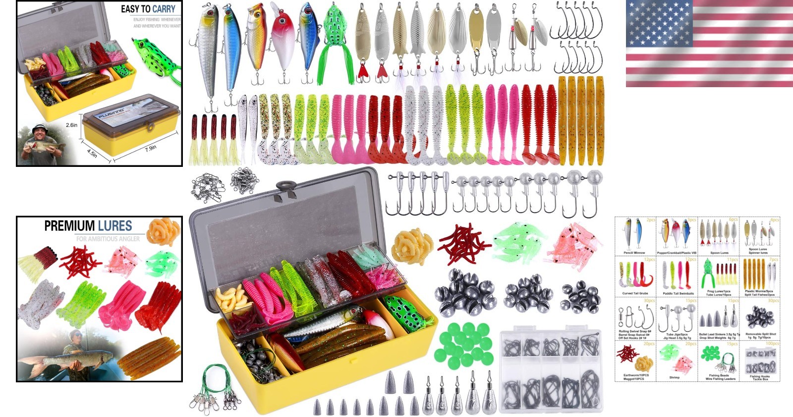 Fishing Tackle Box Set: 302 Multifunctional Lures for Bass & Trout ‹ › ‹ › ‹ › ‹ › ‹ › ‹ › ‹ › ‹ › ‹ › ‹ › Fishing Tackle Box Set: 302 Multifunctional Lures for Bass & Trout Embark on unforgettable fishing adventures with our Fishing Tackle Box Set, meticulously curated for both beginner and expert anglers alike. Features: 302 pieces of high-quality fishing lures, perfect for targeting bass and trout. Compact dimensions of 7.9 x 4.5 x 2.6 inches, ideal for convenient storage. Includes a versatile range of accessories: Popper, Pencil, Minnow, Crankbait, VIB, Frog, Spinner, Spoon, Plastic Worms, and more. Crafted from anti-corrosion stainless steel and durable plastic for long-lasting performance. Double-layer tackle box for organized and easy access to your fishing gear. Benefits: The lifelike 3D Eyes and ultra-realistic patterns draw in even the most discerning fish, increasing your catch rate. Adapts effortlessly to both freshwater and saltwater conditions, ensuring versatility in your fishing endeavors. Lightweight and portable design allows for easy transport to any fishing location. Perfect gift for fishing enthusiasts for any occasion—make every holiday memorable! Why Choose Our Fishing Tackle Set? This impressive tackle box combines quality, functionality, and versatility in one compact set. With 302 meticulously selected lures designed to mimic real fish movements and appearances, you will find the perfect bait for any fishing scenario. Our tackle set not only enhances your chances of a successful catch but is also an exceptional gift for the fisherman in your life, making it ideal for special days such as Father's Day or Christmas. Enhance your fishing experience—order your Fishing Tackle Box Set today and be ready for action on the water! Shipping Free & Fast Shipping - We offer free shipping to most of the USA with a normal delivery time of 3-7 days. However, due to the current situation, additional delivery time (up to 3 weeks) may be required for some items. Alternative Carriers - We may use alternative carriers (e.g. USPS, FedEx, UPS, etc.) to ensure your package arrives safely and on time. Due to the use of multiple carriers, we are unable to provide a tracking number automatically. Handling Time - Orders are processed and shipped within 1-2 business days of receiving cleared payment. Shipping Restrictions - Shipping to Alaska, Hawaii, Puerto Rico, Guam, and other US territories may incur shipping charges or delivery restrictions. Please contact us before ordering, or your order can be refunded/cancelled. State Restrictions - There may be restrictions based on your state of purchase. For example, certain items may not be shipped to California due to state regulations. Contact for Tracking Updates - If you require tracking updates or have any concerns about the delivery of your order, please feel free to contact us, and we will be happy to assist you. Return 30-Day Hassle-Free Returns - We want you to be completely satisfied with your purchase. If you are not, you can return the item within 30 days of receiving it for a full refund or exchange. Easy Return Process - To start a return, simply contact us and we will provide you with a prepaid return shipping label and detailed instructions. Restocking Fee - There are no restocking fees for returns. However, the buyer is responsible for return shipping costs if the return is not due to a seller's error. Refund Processing Time - Refunds will be processed within 5 business days of receiving the returned item in its condition. Payment We accept all major credit cards, PayPal, and Apple Pay for your convenience. Your payment information is secure and encrypted to ensure a safe and seamless transaction. Please complete your payment within 3 days of purchase to avoid any delays in shipping. Feedback Your feedback is extremely important to us. We strive to provide the best products and customer service possible. If you are satisfied with your purchase, please take a moment to leave us a positive review. If you have any concerns or issues with your order, please contact us before leaving negative feedback. We are committed to resolving any problems and ensuring your satisfaction. Contact Us If you have any questions or concerns, please feel free to out to our customer support team. You can contact us through the eBay messaging system. We are available Monday to Friday, 9:00 am to 5:00 pm EST, and we will do our best to respond to your inquiry within 24 hours. Buy it now and enjoy a pleasant shopping experience! Model: Fishing Lures Kit Item Length: Fishing Lures Kit Unit Quantity: 302 Fish Species: Trout,Bass Fishing Type: Freshwater Fishing,Saltwater Fishing Features: Portable Bait Type: Crankbait Buoyancy: Neutral Color: Multicolor Item Weight: 0.61 kilograms Material: Stainless Steel Number in Pack: 302 Bait Shape: Fish Maximum Diving Depth: 0 ft