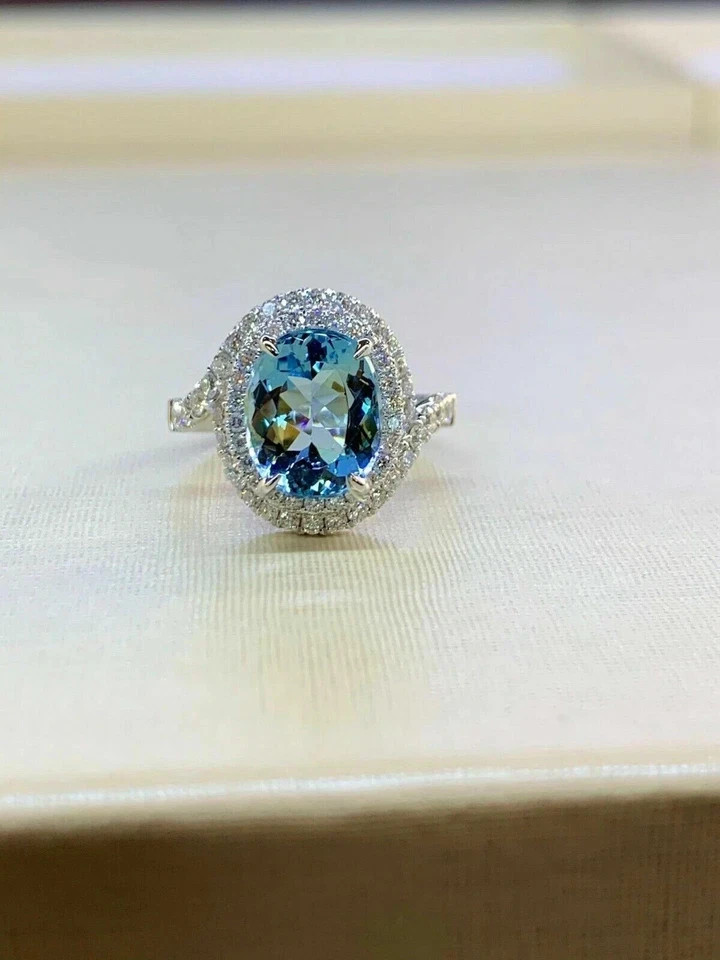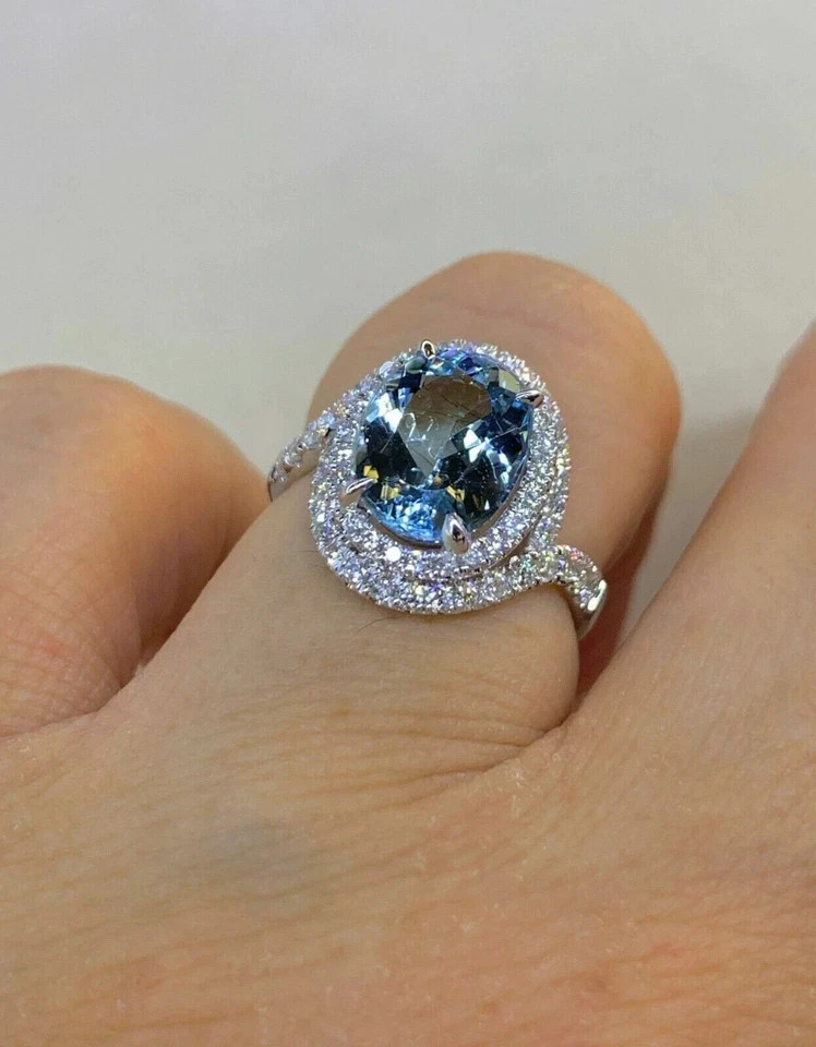 2.55 Ct Oval Cut Natural Aquamarine Engagement Ring 14K Solid White Gold