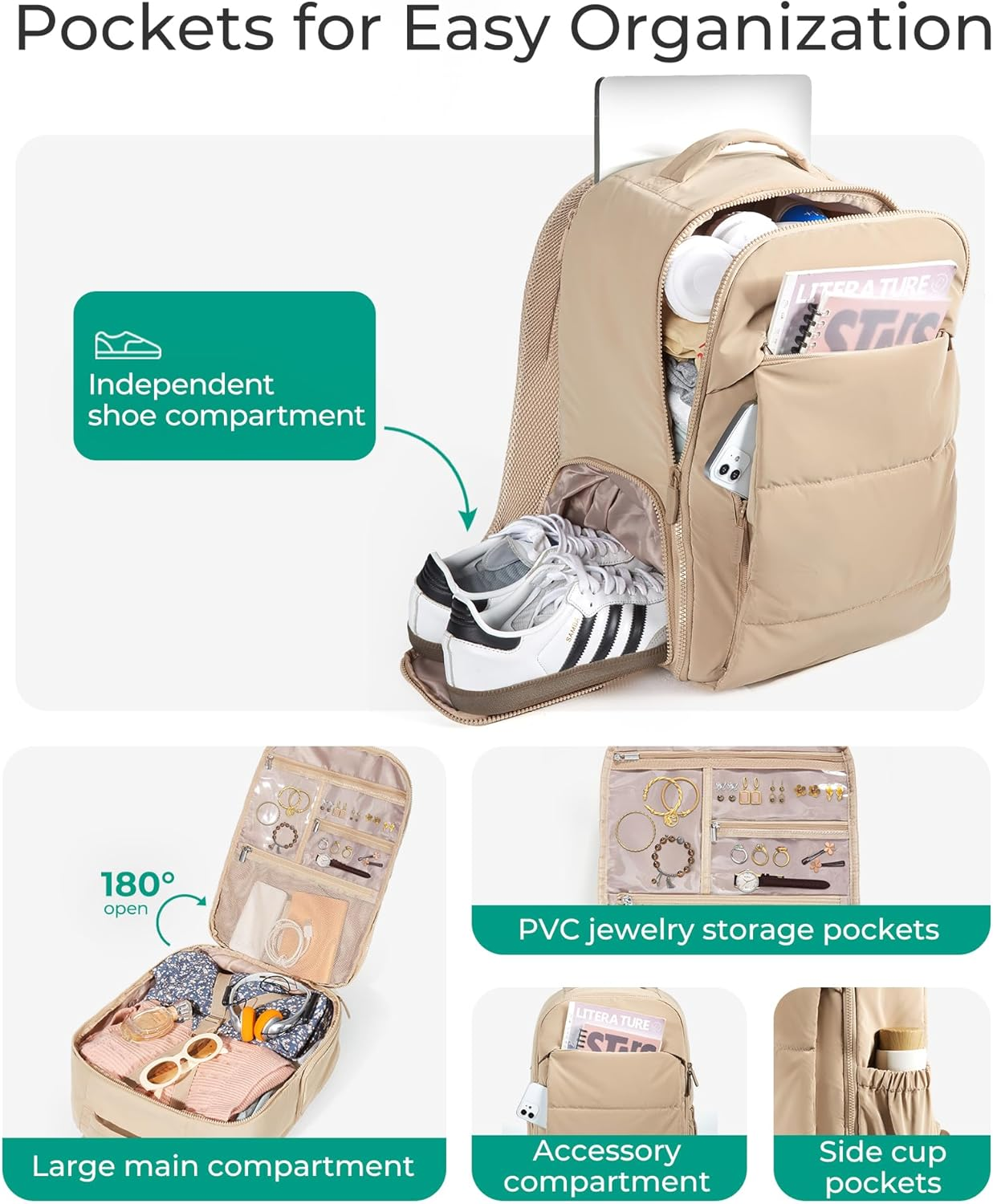 Menu Other Items Feedbacks About Us Contact Us Add To Favorites 30L Carry on Backpack with Shoe Compartment, Airline Approved Travel Backpack, Lightweight Travel Bag Fits 15.6 Inch Laptop, Water-Resistant, Black Ample Compartment: BAGSMART Travel Backpack provides generous room and diverse compartments, effortlessly segregate and store your 15.6" laptop, books, supplies. Meets airline carry-on requirements. Dimensions:17.3×12.6×7.9 inches Jewelry Safekeeping: Our carry on bag offers PVC pockets for jewelry storing, different sizes transparent pockets keep your belongings separated and always find the jewelry you need. Bid farewell to rummaging through a chaotic bag Practical Features: A separate shoe compartment on the side maintains cleanliness and organization. The Padded 15.6" laptop compartment towards the backside, keeps electronics easy to access and provides reliable protection against impacts. Additionally, the back strap conveniently fits over a suitcase handle for effortless transport Enhanced Comfort: Made of lightweight and soft fabric. The padded straps ensure an even distribution of weight, provides ergonomic support for your back, while the breathable mesh on the backside keeps you cool. Even when filled with heavy supplies, you can enjoy a comfortable carrying experience Style Meets Functionality: This Travel Bag harmoniously merges style with practicality, showcase your unique style while comfortably carrying all your essentials. A real must have for international travels, business trip, go out to party, cruise vacation and other outdoor activities Product Description Item Specification Age Range Description Adult Capacity Total 30 Liters Color Black Product Dimensions 7.9 x 12.6 x 17.3 inches Item Weight 1.41 pounds Department unisex-adult SHIPPING FREE FAST SHIPPING FREE SHIPPING We are always working hard to ensure your package arrives as soon as possible. Please understand that some factors like weather, high postal traffic, and the performance of shipping companies are outside of our control. We offer free shipping to the lower 48 states. We do not accept P.O. Boxes. Please provide a physical address. If you have a problem or question regarding your transaction please contact us immediately. We will work with you to resolve any problem you may have. Thank you