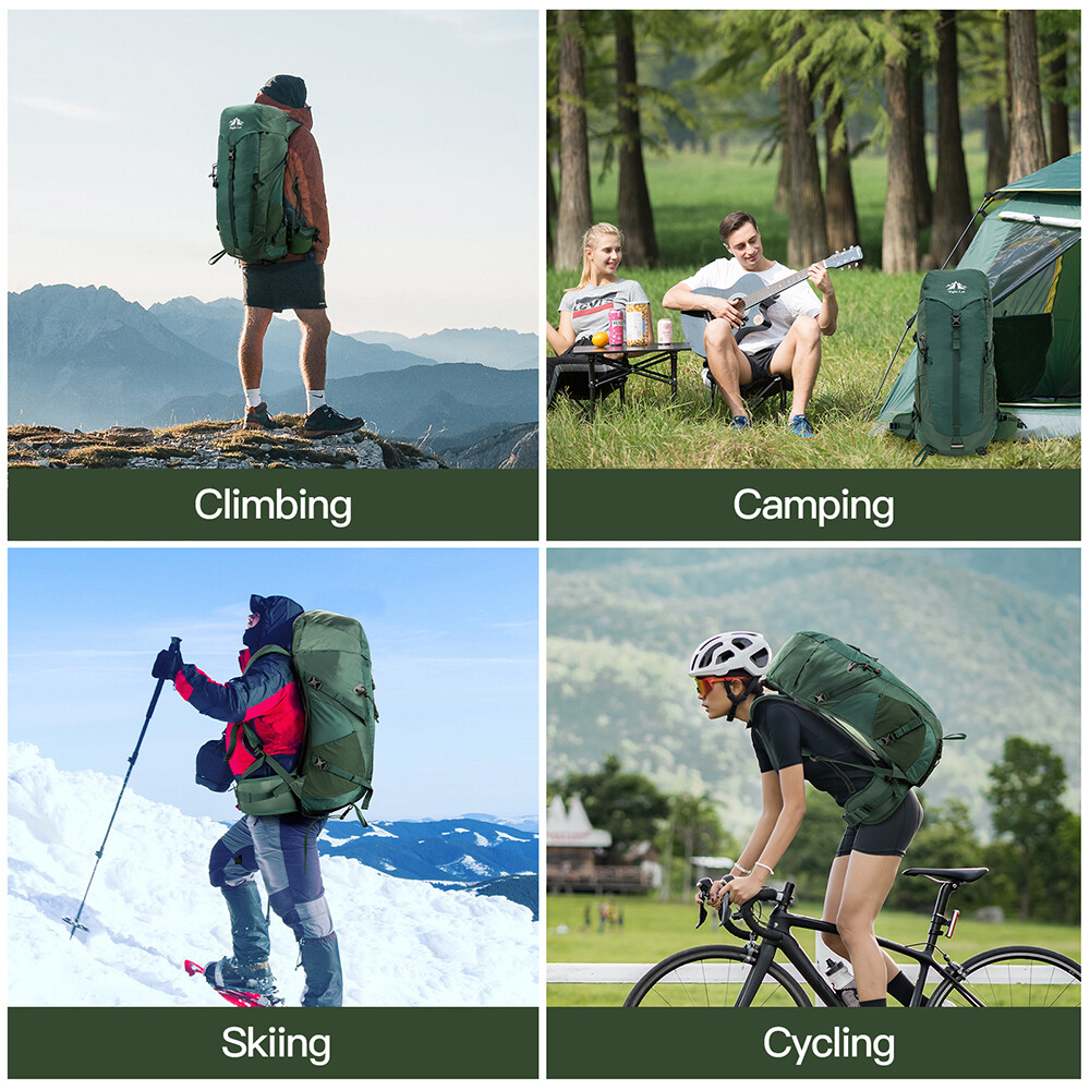 Home All Products Hot About Us Contact Us Feedback Night Cat 30L/50L/100L Internal Frame Hiking Backapcks 【Ergonomic Frame Vent System】 Internal Frame backpack,designed with frame vent system.Ergonomic back support offer better ventilation to dissipate heat and make carrying comfort at the great level.Ideal backpack for men women. 【Ultralight & Comfortable】 Perfectly equipped with Frame Comfort Light-System,make your backpacking camping easy and burden-free. 【 with Hydration System】 The Ultralight Hiking Backpack comes with multiple storage compartments,makes your items organized well for your hort trekking tours.This camping backpack supports to put a water bladder with straw in it. 【Waterproof with Rain Cover】 This waterproof camping backpack comes with an extra rain cover,keep the camping gears dry in backpack, no worry about raining during outdoor. 【High-quality & Durable】 High quality abrasion-resistant water-resistant 420D PU Nylon material,high dense stitching and well-sewn craftsmanship,make this backpack durable and well for your daypack backpacking traveling.