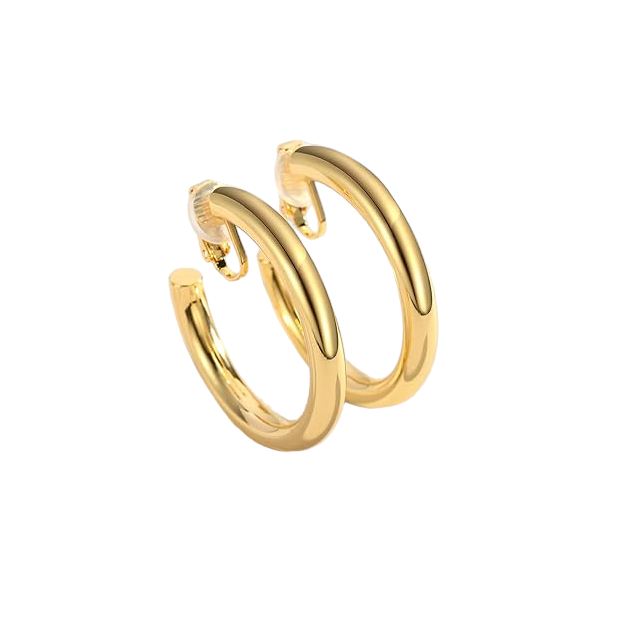 Smooth Gold Surface 30mm Hoop Clip-On Earrings are a stylish accessory featuring a hoop design with a smooth gold surface. These earrings have a clip-on closure, making them easy to put on and take off without the need for pierced ears. Perfect for adding a touch of sophistication and elegance to any outfit.
