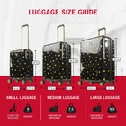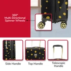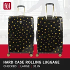 Keep your belongings conveniently and efficiently stored in one place while breezing through the airport or hotel lobby with this stylish rolling luggage on wheels. Constructed with a sleek and stylish gold dots design, this hard shell carry on luggage features 8 360 degree multi-directional spinner wheels which allow for smooth travel over all types of textured surfaces, and the lightweight hard sided luggage with spinner wheels features a retractable pull handle so you can reach your destination without hassle. The hard case luggage features a sizable polyester-lined main zip compartment for easy packing, a zip wet dry compartment for personal essentials, 2 mesh zip pockets for small accessories, clothing compression straps to keep clothing from wrinkling, and features expandable storage with 2-inch zipper gusset. The light weight carry on luggage roller features a hard shell ABS plastic case which protects your luggage and is easy to spot clean to keep the carry on luggage with wheels looking stylish during travel. The large travelling bag with wheels measures 31 H x 19.5 W x 13 D in inches. Backed by a 5 year warranty. IMPULSE TRAVEL LUGGAGE: Hardside luggage with a sleek and stylish gold dots design; Hardshell luggage carrier is intended as checked baggage for airlines ABUNDANT STORAGE: Hard luggage features a divided full-body main compartment and an interior zipper compartment for storing your belongings, clothing compression straps to keep clothing from wrinkling, and features expandable storage with 2-inch zipper gusset EASY PORTABILITY: Wheeled luggage features a lightweight upright design with eight 360-degree multi-directional spinner wheels and a retractable handle which allows for effortless movement DURABLE: Travel luggage bag features a hard shell ABS plastic case which protects your luggage and is easy to spot clean DIMENSIONS: Hard shell suitcases measure 31 H x 19.5 W x 13 D in inches, and weigh 9.5 lbs