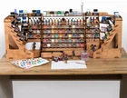 Material Wood Color Wood Special Feature Portable Product Dimensions 10.2"D x 3.2"W x 15"H Shelf Type Corner Shelf About this item Package info – Wooden craft paint storage rack contains 18 big holes (1.37 inches diameter) and 14 small holes (1 inches diameter) and we think that this quantity is suitable for an artist of any level of professionalism. Also paint rack organizer has 46 holes for paint brushes and special scene for photo-shooting. For your comfortable art we've added 6 stands for miniatures and 1 drawer for DIY tools in our Citadel paint rack set. Thereby you will be able to paint even the smallest details! Perfect solution for your comfort – This awesome army painter paint supply storage organizer puts together all of your paints and other art stuff. Just imagine, with Plydolex wooden craft paint storage rack you will find the desired paint as quickly as possible. Also, Citadel paint holder has 1 cabin, which is convenient for storing more paints and other DIY tools and items. Universal size holes are ideal so it is easy to put and remove paints and brushes from the craft paint station. Easy to assemble – In the package you will find details of the wooden craft paint storage rack that should be assembled and step-by-step instructions. Our advantage is that the wooden paint brush holder is assembled without glue, and wooden fasteners are included in the set, so the finished construction of Citadel paint rack will be sturdy and durable. We are also convinced that the process of assembling Plydolex paint station can also be a fascinating DIY activity! Natural strong material – Plydolex Vallejo paint rack is made of natural plywood which is absolutely environmental material! An absolutely smooth surface makes using the paint organizer even more handy. Plywood is a lightweight enough material that make this Citadel paint storage organizer comfortable to use and transport. We suggest you evaluate Plydolex modular paint supply organizer yourself because we are confident in the high quality of our products! Convenient design – Plydolex Vallejo paint organizer produced for miniature painting set and other tools. In our paint holder you can store Citadel paints, Vallejo paints, Apple Barrel paints, FolkArt paints, Tamiya paints, and many others. The laconic design of the army painter paint rack decorates your workplace and makes it more organized. If you like working with paints, you will appreciate the necessity of Citadel paint rack. Also, our army painter paint rack organizer will be a great gift. Material Wood Color Wood Special Feature Portable Product Dimensions 10.2"D x 3.2"W x 15"H Shelf Type Corner Shelf Number of Shelves 6 Finish Type Engineered plywood Assembly Required Yes Mounting Type Tabletop Recommended Uses For Product Storage Included Components assembly manual Item Weight 2.7 Pounds