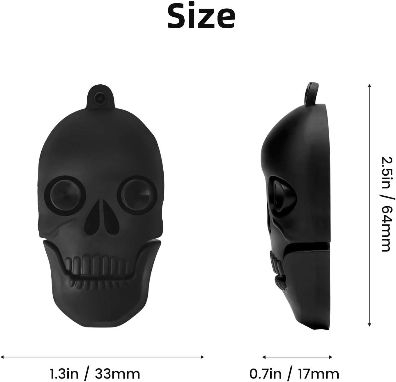 Storage capacity: 32GB usb flash drive x1. Cool skull-shaped memory stick with keychain, novelty and interesting thumb drives for external data storage. Interesting exterior design, lightweight and portable. Compact and sturdy, its silicone shell ensures its shock and dust resistance, and the Class-A USB 2.0 chip ensures stable and fast data transmission. Suitable for data storage, transmission and sharing. Supported file types include music, photos, pictures, movies, video files, working files, programs, presentations, learning handouts and more. Plug and Play. No need to install any software. Compatible with Windows XP/7/8/10/11, MacOS, Linux, etc. Compatible with all devices with USB-A ports such as desktop PC, laptops, tablets, TVs, speakers, etc. Storage capacity: 32GB usb flash drive x1. Cool skull-shaped memory stick with keychain, novelty and interesting thumb drives for external data storage. Interesting exterior design, lightweight and portable. Compact and sturdy, its silicone shell ensures its shock and dust resistance, and the Class-A USB 2.0 chip ensures stable and fast data transmission. Suitable for data storage, transmission and sharing. Supported file types include music, photos, pictures, movies, video files, working files, programs, presentations, learning handouts and more. Plug and Play. No need to install any software. Compatible with Windows XP/7/8/10/11, MacOS, Linux, etc. Compatible with all devices with USB-A ports such as desktop PC, laptops, tablets, TVs, speakers, etc.