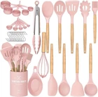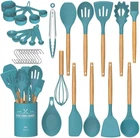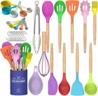 FOOD GRADE SILICONE: Made of food-grade silicone, BPA-free, can use in any type of food. And it will probably last longer than the other plastic kitchen utensils. This silicone cooking utensils does not react with food or beverages, you don’t have to worry about the health of your families will not retain odors or colors, Before the first use, the original smell will disappear after the silicone soaking in water and exposed it to the air for about 3 hours NO BEND & NO BREAK & HEALTHY FOR COOKWARE: Our kitchen utensils are more sturdy than other usual wooden kitchen utensils, ensures daily use for a long time without being worn down. Designed not to bend, break or rust HIGH TEMPERATURE WITHSTAND: The Silicone Cooking Utensils can withstand high temperatures up to 446°F/230°C. All-around silicone added to the softness, no longer worry food will stick your cookware. Silicone head protect your pans, keep the cookware surface not scratched or dented. Extend the life of all your kitchen pans.They are scratch resistant, unlike plastic and rubber utensils that will easily melt or l kitchen utensils harm your nonstick pots 33 DURABLE WOODEN HANDEL KITCHEN UTENSILS SET: Anti scalding protect your hand from burning, 33 professional silicon Kitchen utensil set includeshe set includes flexible spatula, soup ladle,serving spoons pasta server, spatula turner , tongs, mesuring cup and spoons, 10 hooks, silicone mat and so on. Meet your all kinds of kitchen needs, Because of the wooden handle, We don't recommend soaking in water for a long time or dishwasher cleaning BEST KITCHEN TOOLS: One- piece stainless steel core to enhance durability and toughness to keep the spatulas from bending or deformation. 33 Different shape for its unique function would be your great kitchen helper! A small holes on the handles for easy storage. extra 10 pcs hooks and utensils holder for convenient storage. A silicone mat provide you more convenience. Great presents for anyone who loves to cook, also good presents set for your friend,family Brand Umite Chef 8234971