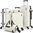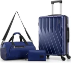 Product description 【Premium 5-Piece Luggage Set & 4-Year Warranty Service】Hoteel 5 piece luggage set includes 20" carry on luggage, a 24'' checked suitcase, a 28'' large suitcase, multi-function fitness bag, and a toiletry bag. You can combine them freely to meet the needs of family or friends traveling and long-distance travel. ✔️Hoteel suitcase set includes 4-Year Limited Warranty and 90-day standard return period, and you can always contact us to replace any damaged parts, such as wheels, handles. Contact us on Amazon if you need help for your purchase. 【100%PC Extra Durable Suitcase】This Hoteel hardside luggage is made of high-quality 100%PC materials, which is known for its lightweight, high elasticity and durability, maintaining maximum reliability even under violent impacts and scratches, keeping your luggage looking good and long-lasting after your trip. Better than ABS+PC and ABS materials. The lightweight luggage is equipped with three-stage adjustable telescopic handle and top/side handles for comfortable use. 【Super Smooth Double-Wheel Spinner Wheel】The spinner wheels on this luggage sets feature a double-wheel structure, with a total of 8 wheels to help the hardshell suitcases move smoothly over various complex roads, allowing you to move freely even in crowded areas. Compared to single-wheel, double-wheel spinner wheel move more quietly, smoothly, and stably, and less likely to tip over when pushing or pulling. 【YKK Explosion-Proof Zipper & TSA lock】 The travel suitcases with wheels is equipped with YKK explosion-proof zippers, which have passed 3,000 durability tests and resistant to be punctured by sharp tools, effectively protecting your privacy and security. TSA-approved lock and fully-lined interior divider with organization pockets and waterproof compartment, ensuring that your belongings are safe and organized during your journey. 【Multifunctional Fitness Bag】The multifunctional fitness bag has hidden double straps at the bottom and a long shoulder strap, providing you with multiple ways to use it, such as a handbag, crossbody bag, or backpack. The side of the gym bag is equipped with a shoe bag and a large ventilated mesh window, and the back features a back sleeve so you can conveniently attach it to the retractable luggage handle.